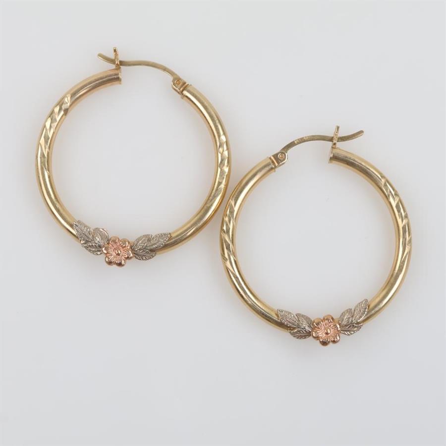 10kt Tri Color Gold Hollow Hoop Earrings