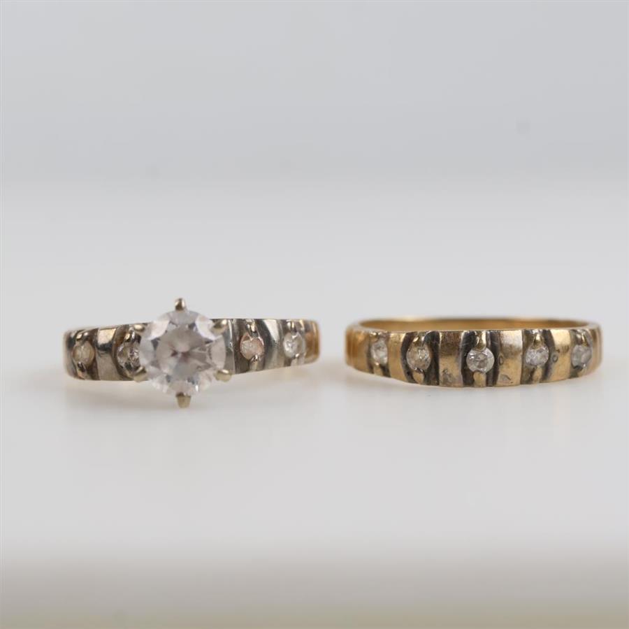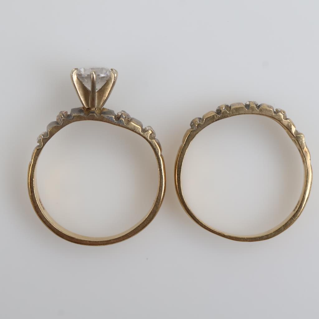 10kt Two Tone Gold Clear Stone Wedding Set