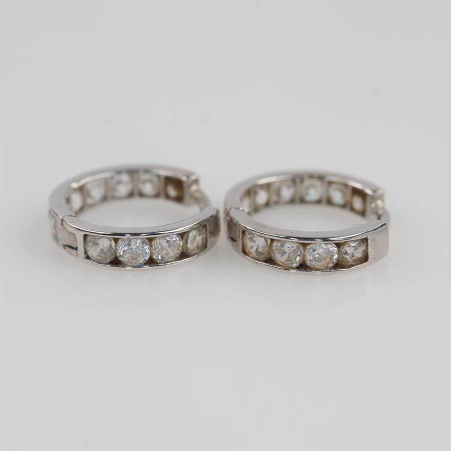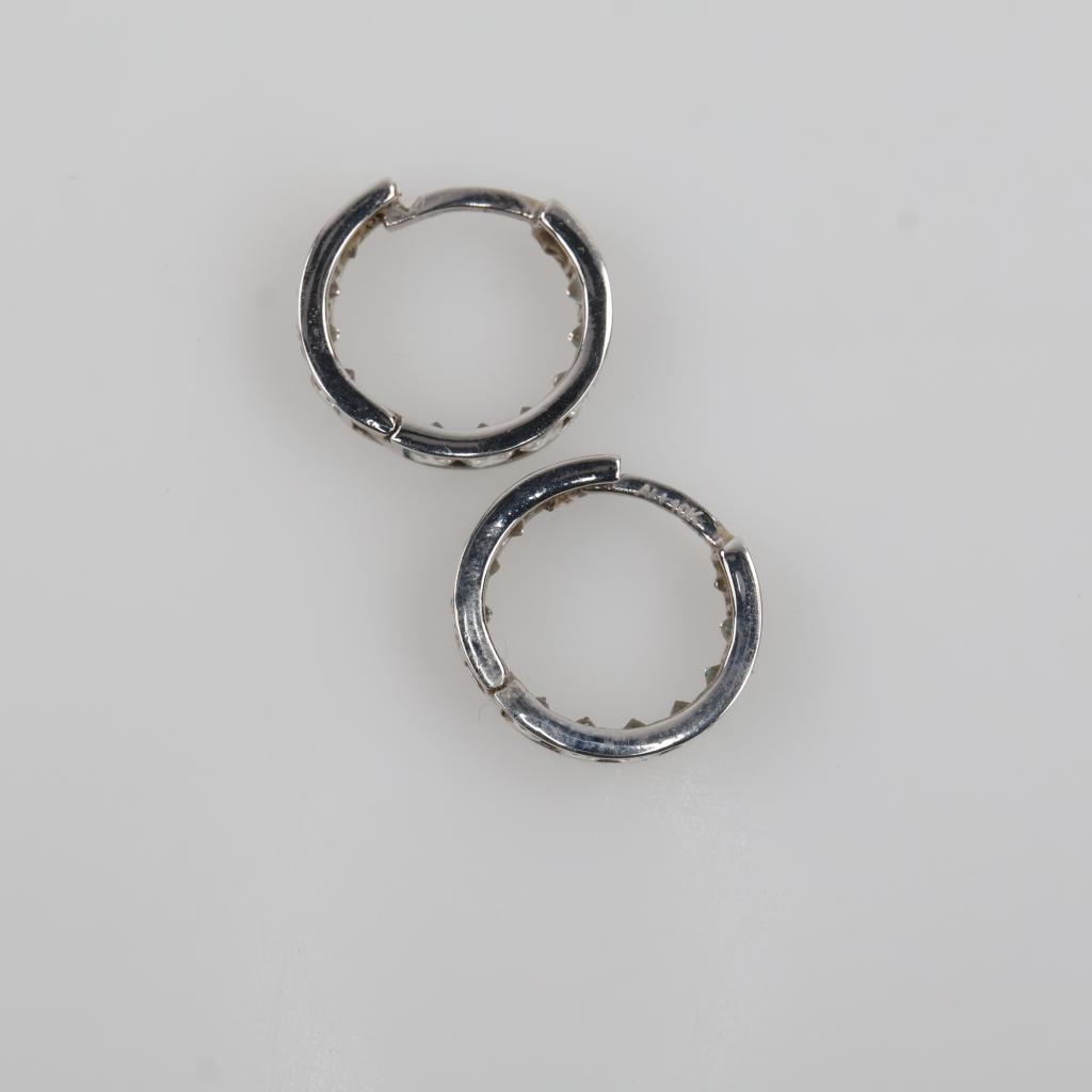 10kt White Gold Clear Stone Huggie Hoop Earrings