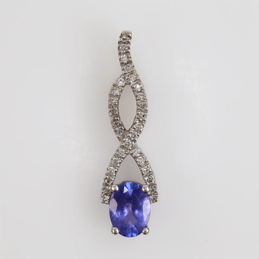 10kt White Gold Purple Stone Diamond Accent Pendant