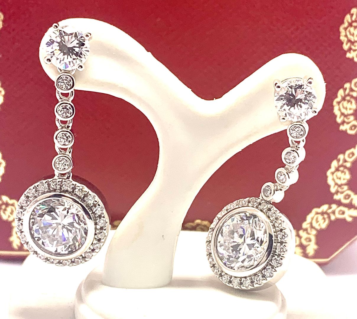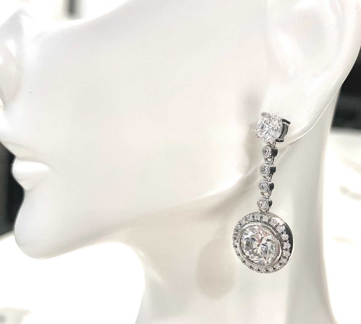 12.00ctw Moissanite Dangle Earrings in 18k WG & .925 Sterling Silver