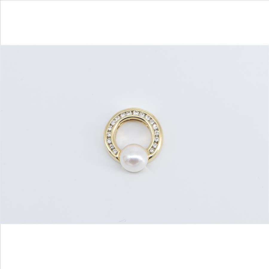Item:  14K 0.32 Ctw Diamond Pearl Vintage Circle Round Yellow Gold Pendant