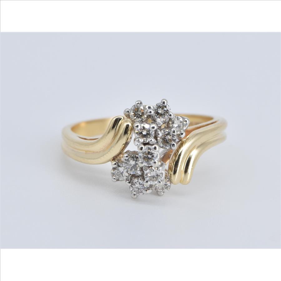 Item:  14K 0.38 Ctw Natural Diamond Vintage Cluster Yellow Gold Ring, Size 6.75