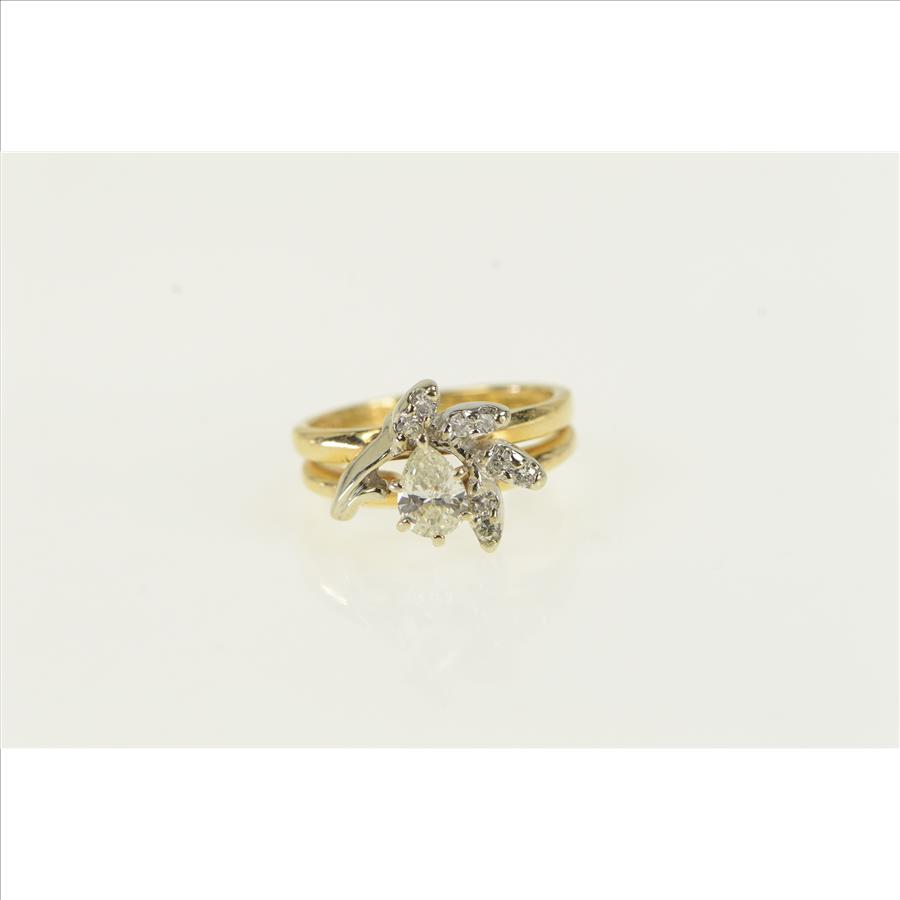 14K 0.40 Ctw Pear Diamond Bridal Engagement Yellow Gold Ring, Size 3.25