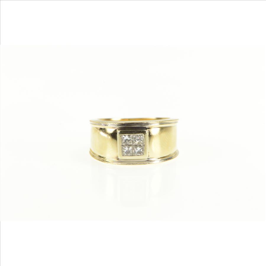 Item:  14K 0.40 Ctw Princess Cluster Squared Band Yellow Gold Ring, Size 6
