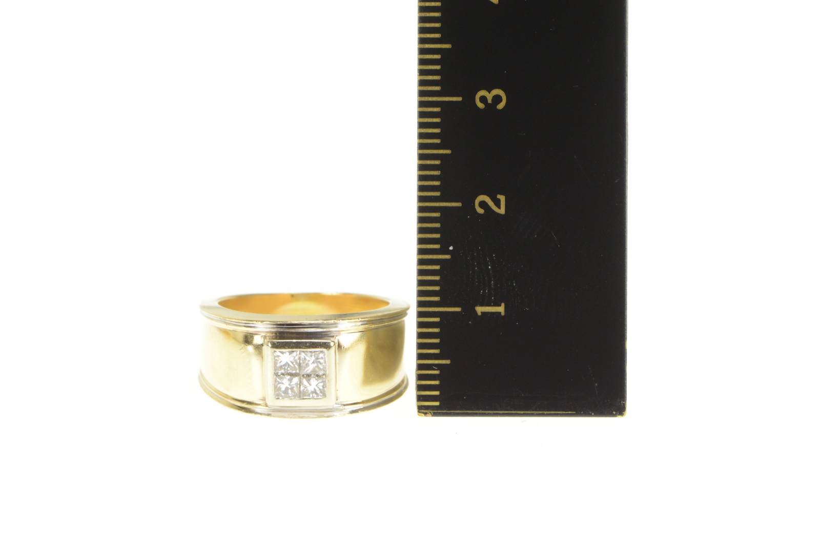 14K 0.40 Ctw Princess Cluster Squared Band Yellow Gold Ring, Size 6