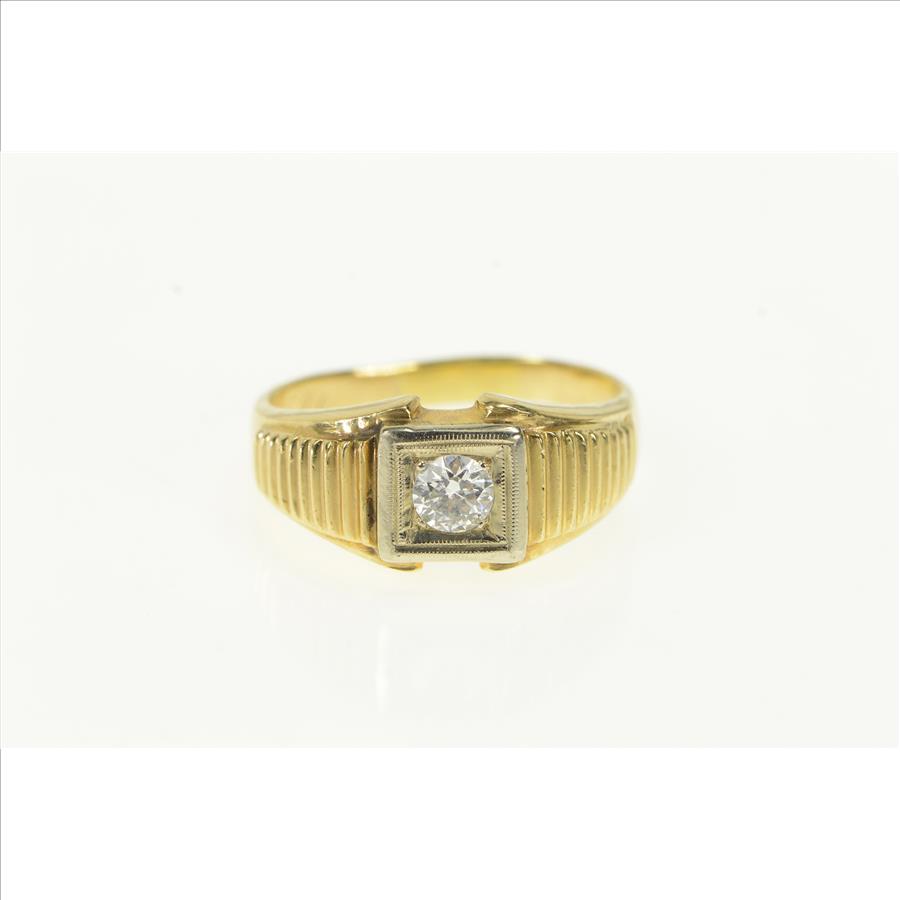 14K 0.50 Ct Old European Cut Men's Diamond Yellow Gold Ring, Size 12