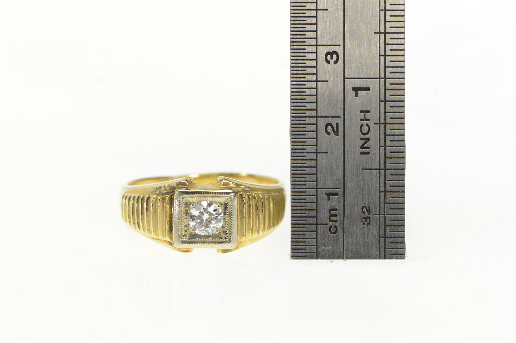 Item:  14K 0.50 Ct Old European Cut Men's Diamond Yellow Gold Ring, Size 12