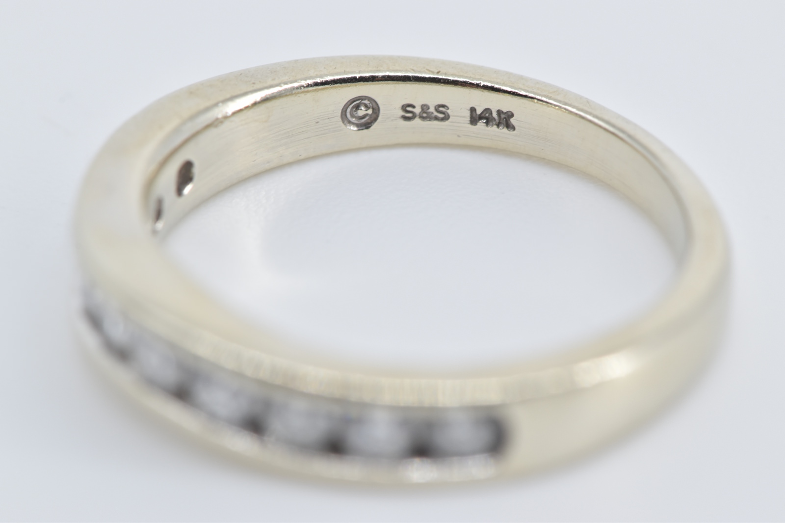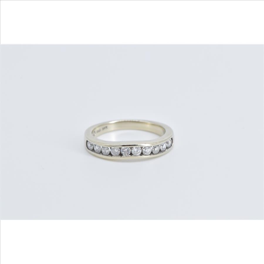 Item:  14K 0.60 Ctw Natural Diamond Curved Wedding Band White Gold Ring, Size 6