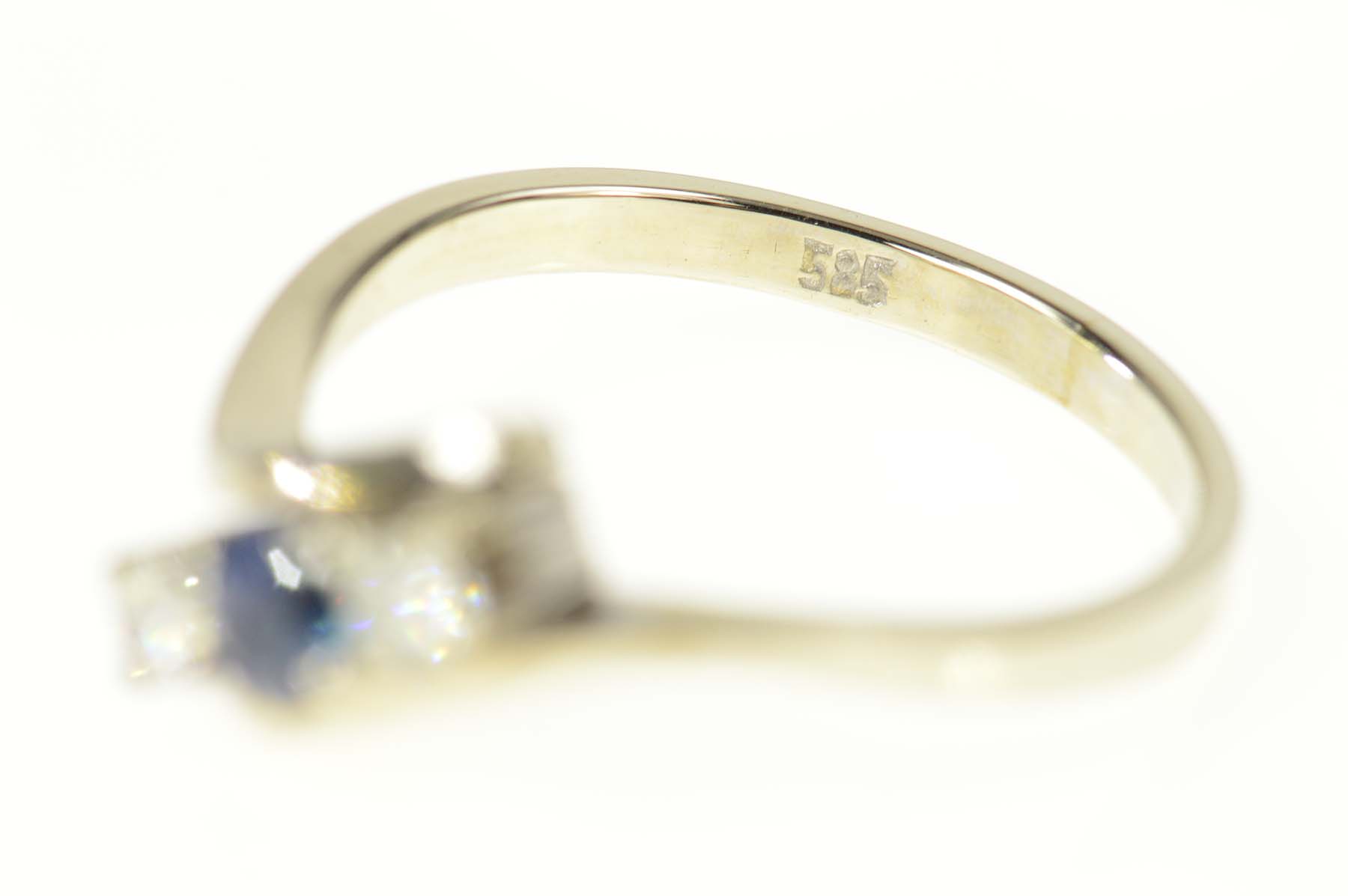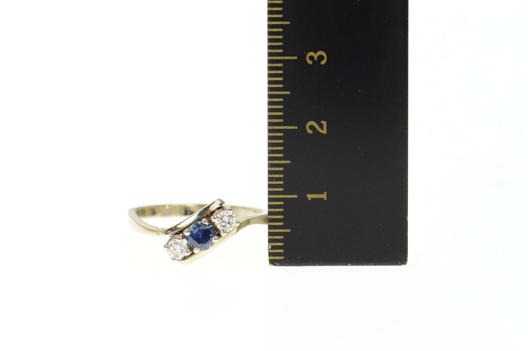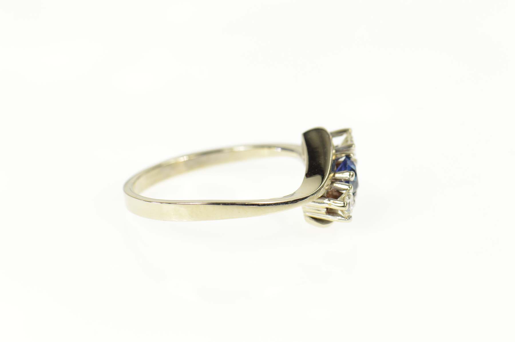 Item:  14K 0.60 Ctw Sapphire Diamond Bypass Engagement White Gold Ring, Size 8