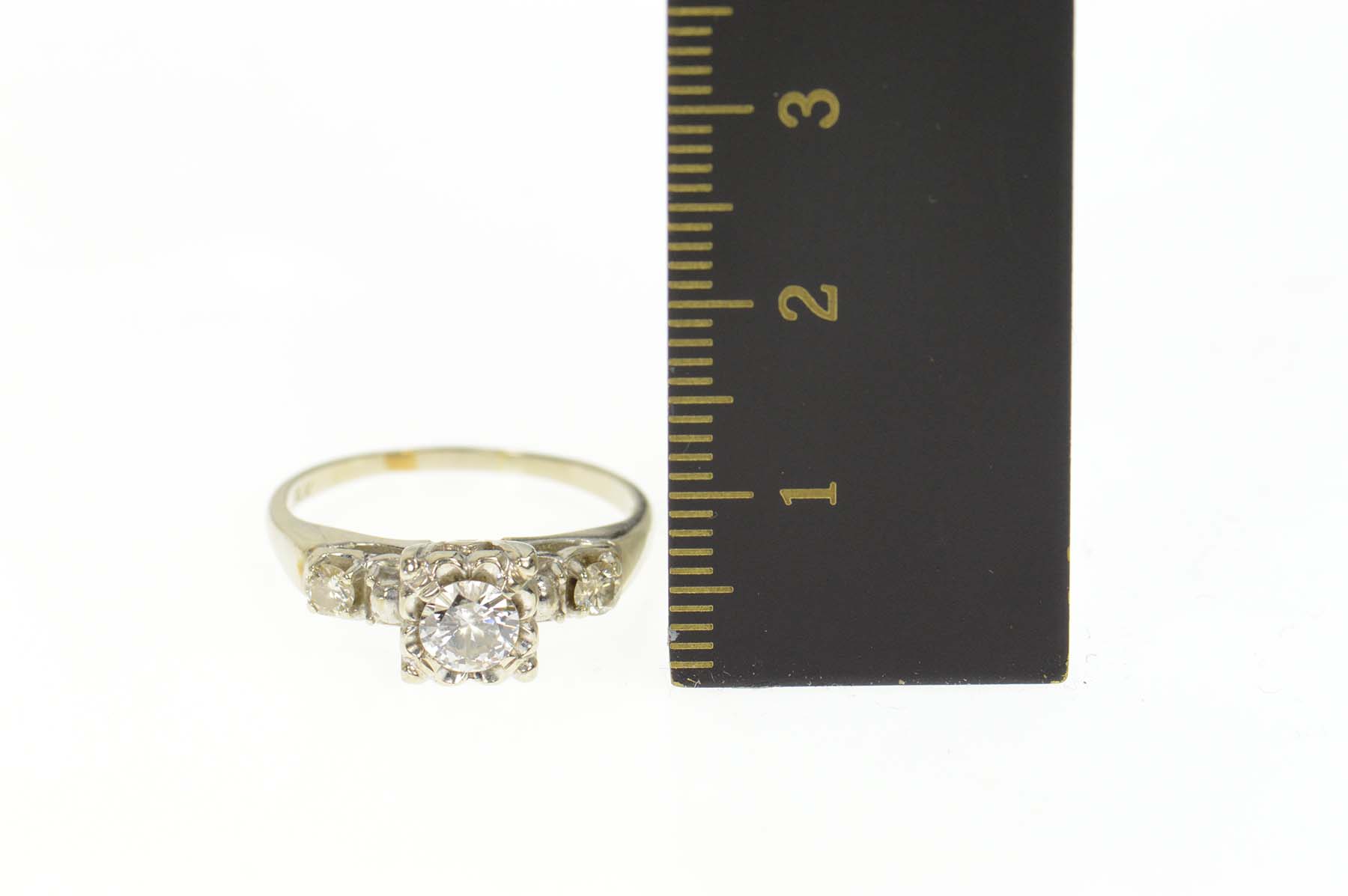 Item:  14K 0.61 Ctw 1940's Classic Diamond Engagement White Gold Ring, Size 7.5