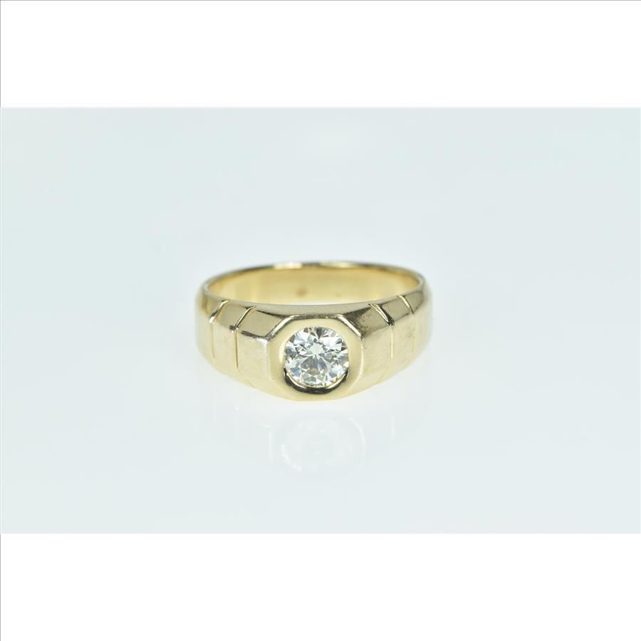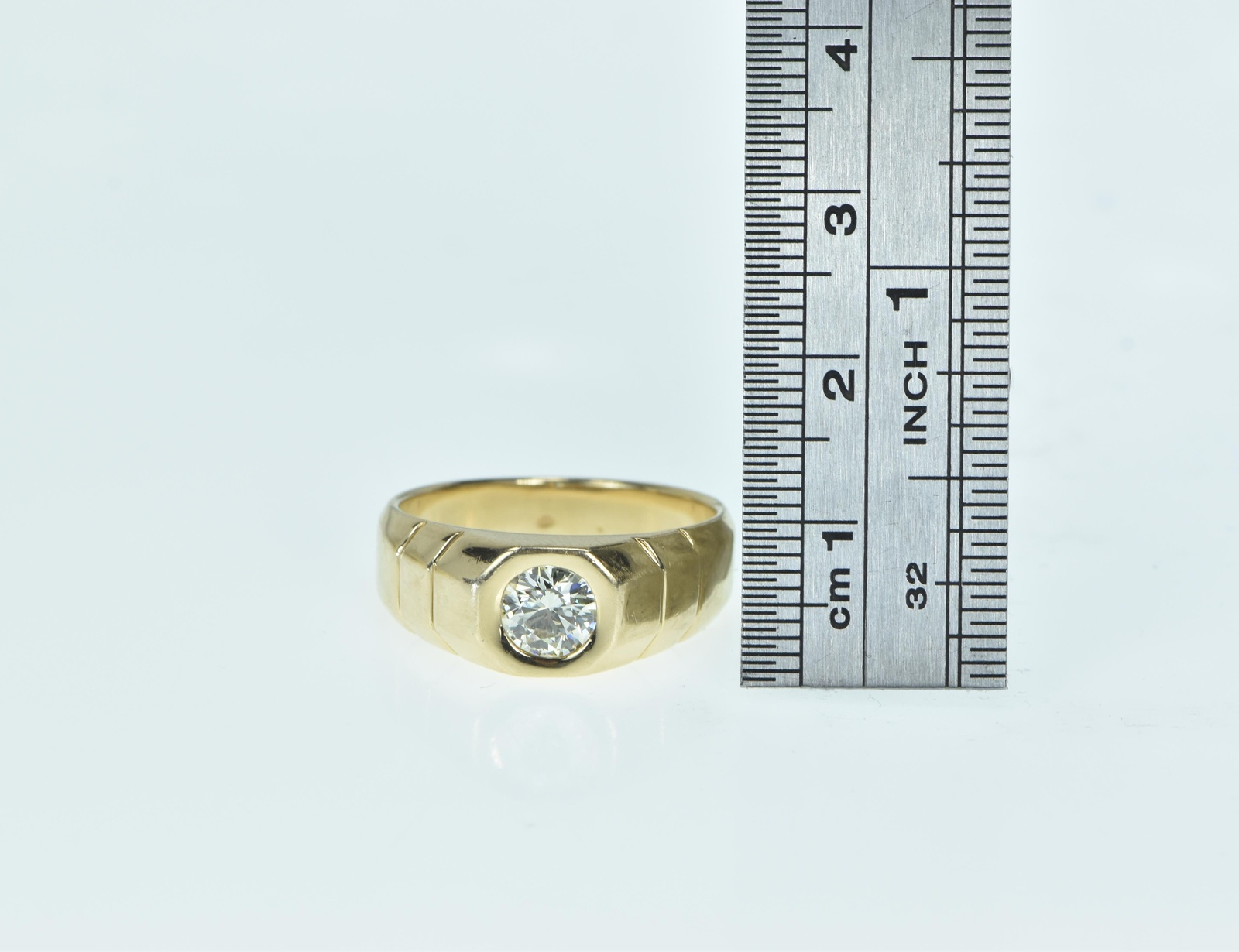 14K 0.76 Ct Diamond Solitaire Men's Squared Yellow Gold Ring, Size 9.5