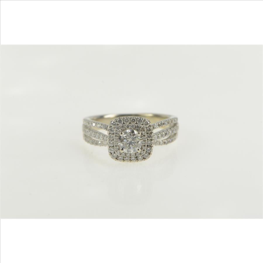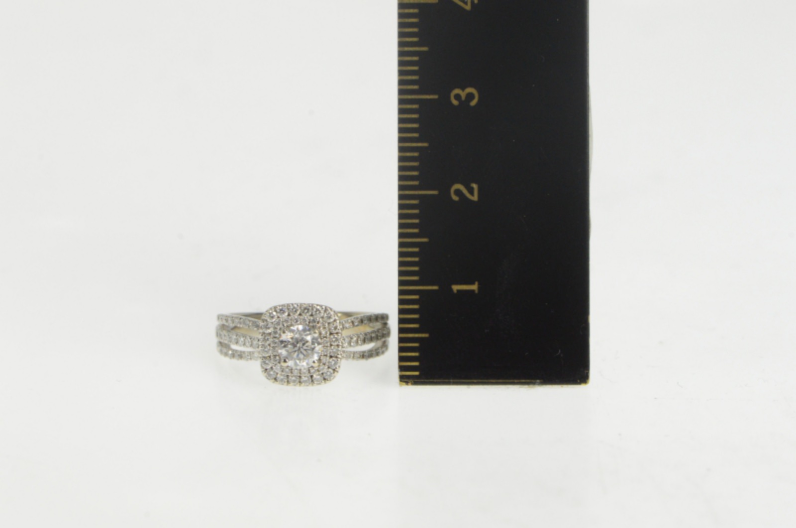Item:  14K 0.79 Ctw Diamond Halo Cathedral Engagement White Gold Ring, Size 4.25