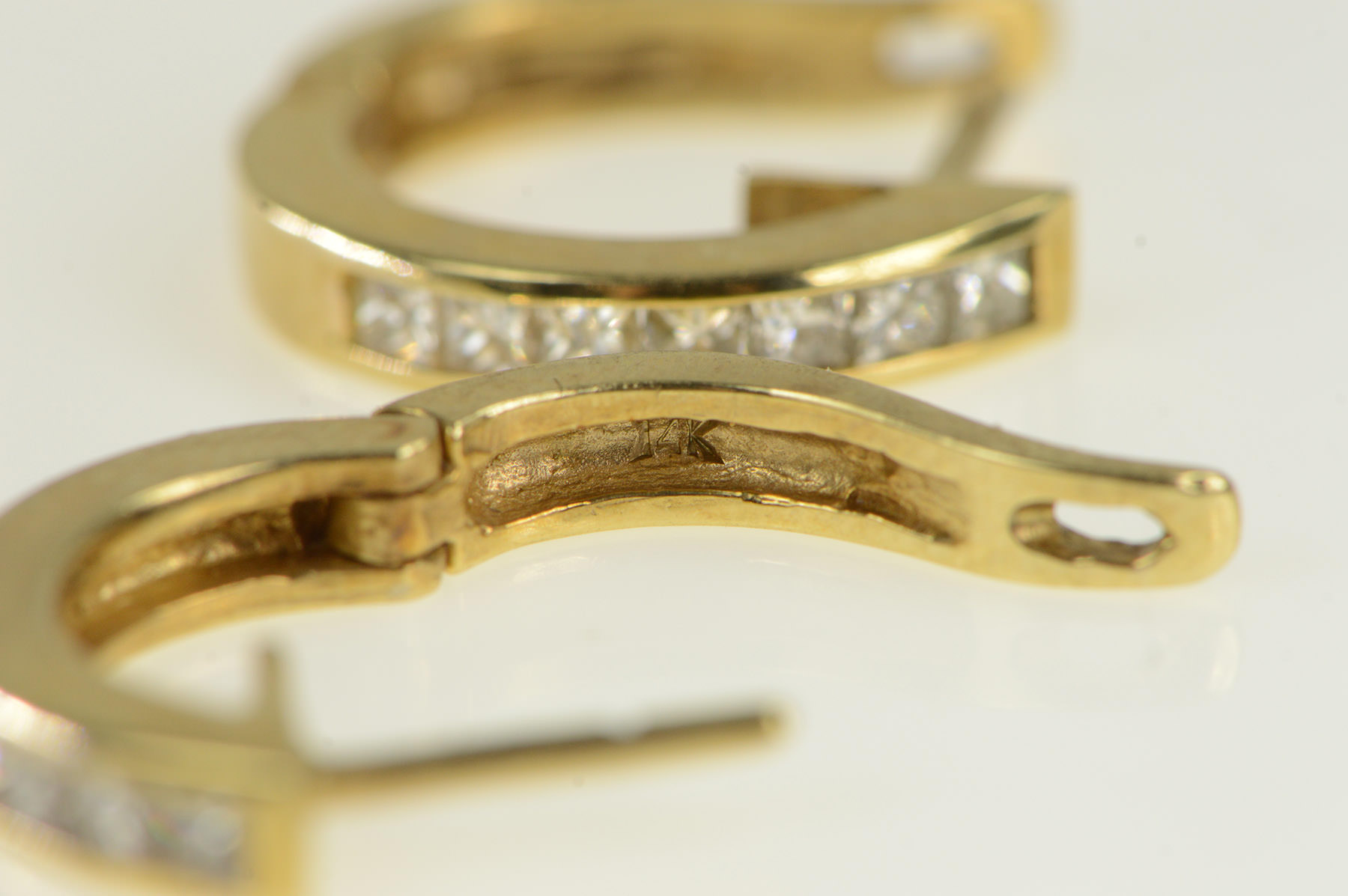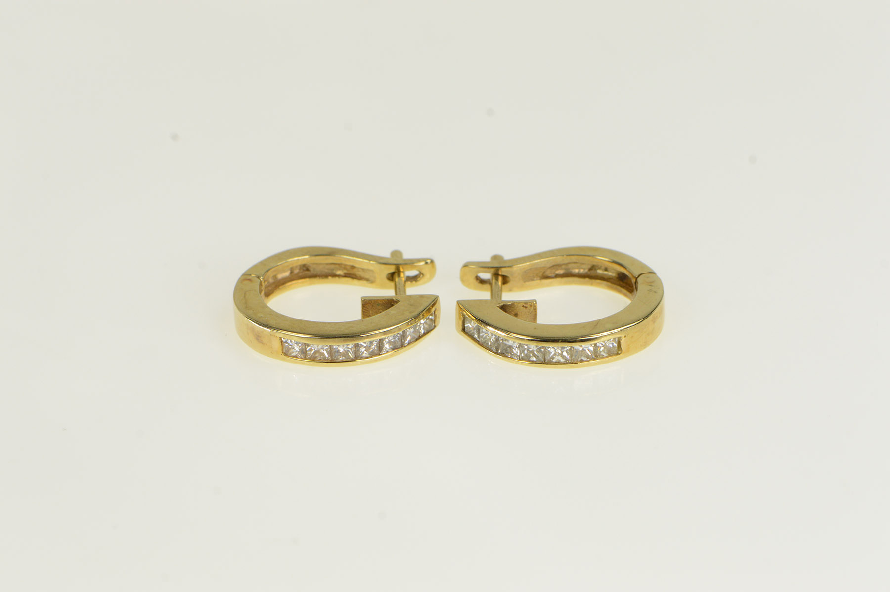 Item:  14K 0.80 Ctw Princess Diamond Oval Hoop Yellow Gold Earrings