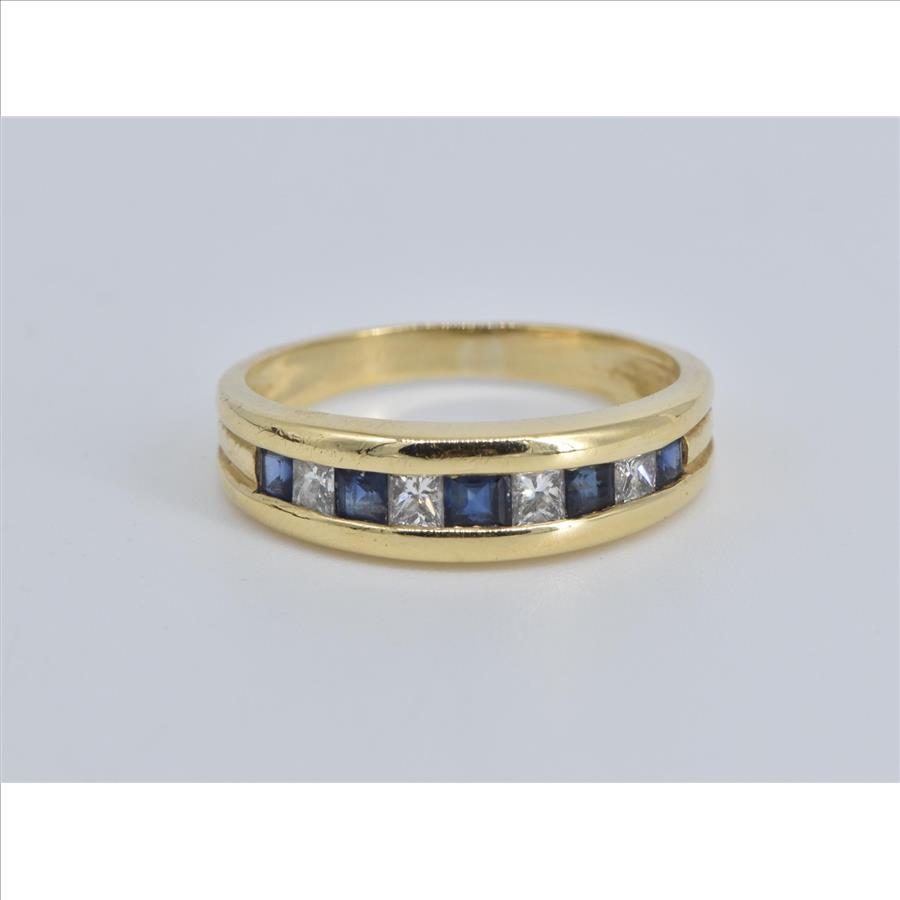 Item:  14K 0.82 Ctw Princess Natural Diamond Sapphire Yellow Gold Ring, Size 8.75