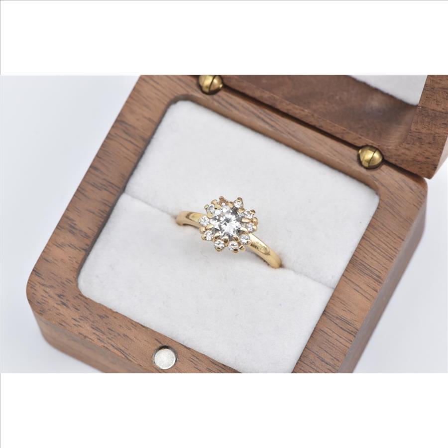 Item:  14K 0.85 Ctw Natural Diamond Halo Engagement Yellow Gold Ring, Size 5.75
