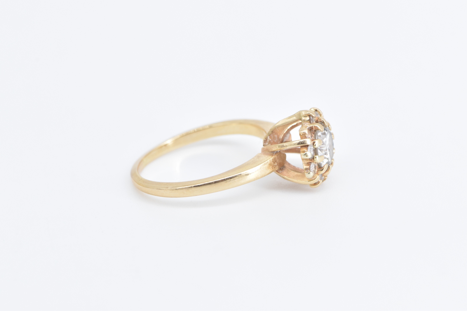 14K 0.85 Ctw Natural Diamond Halo Engagement Yellow Gold Ring, Size 5.75