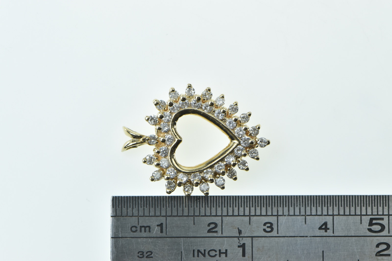 Item:  14K 0.95 Ctw Diamond Cluster Heart Love Symbol Yellow Gold Pendant