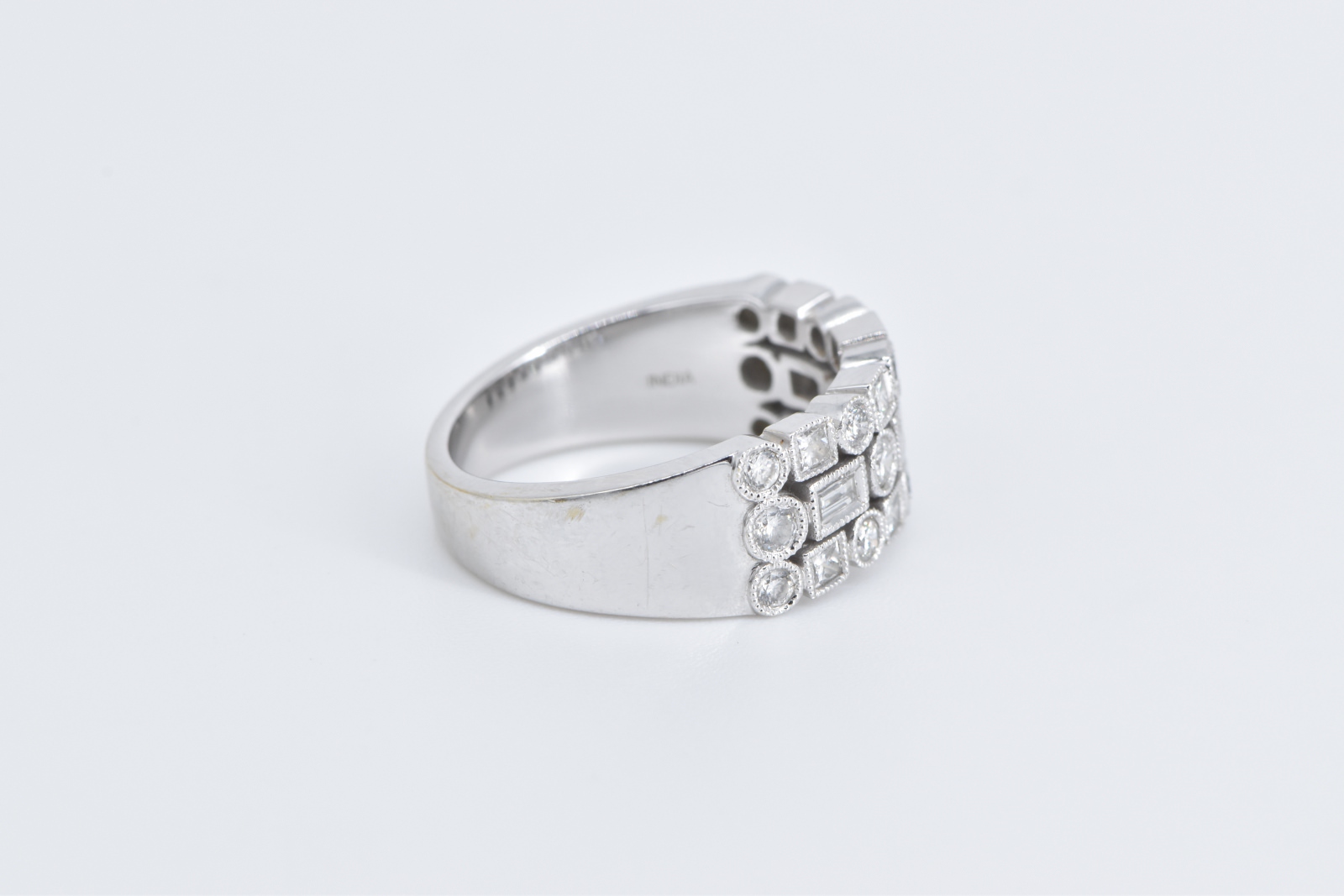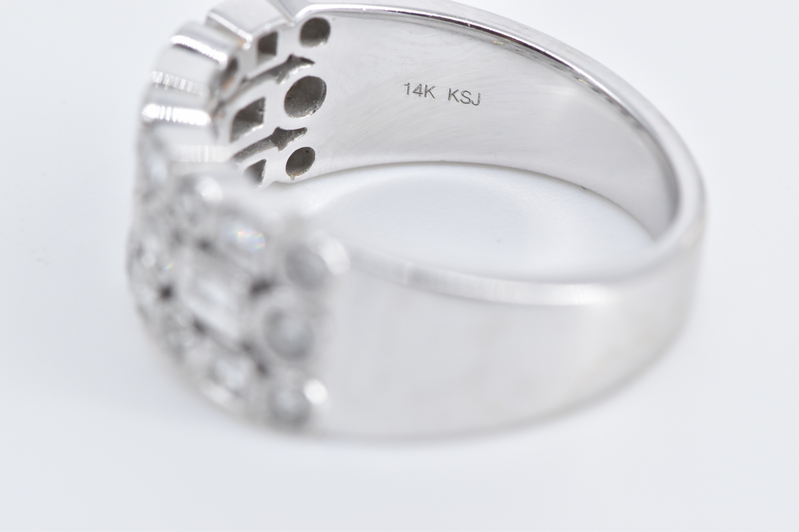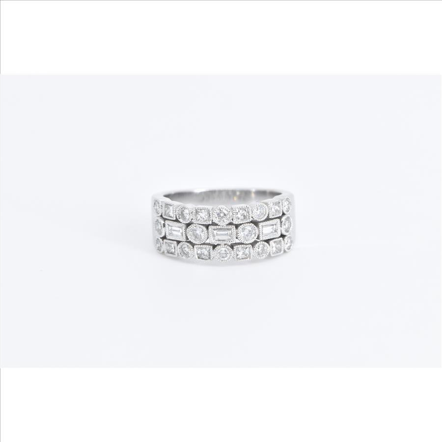 Item:  14K 1.00 Ctw Geometric Diamond Encrusted Statement White Gold Ring, Size 7.25