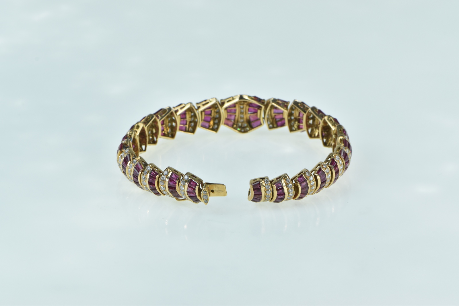 Item:  14K 10.00 Ctw Diamond Syn. Ruby Striped Encrusted Yellow Gold Bracelet 6.5"