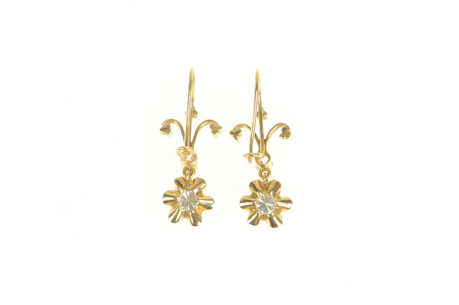Item:  14K 1.10 Ctw 1950's Diamond Gypsy Dangle Yellow Gold Earrings