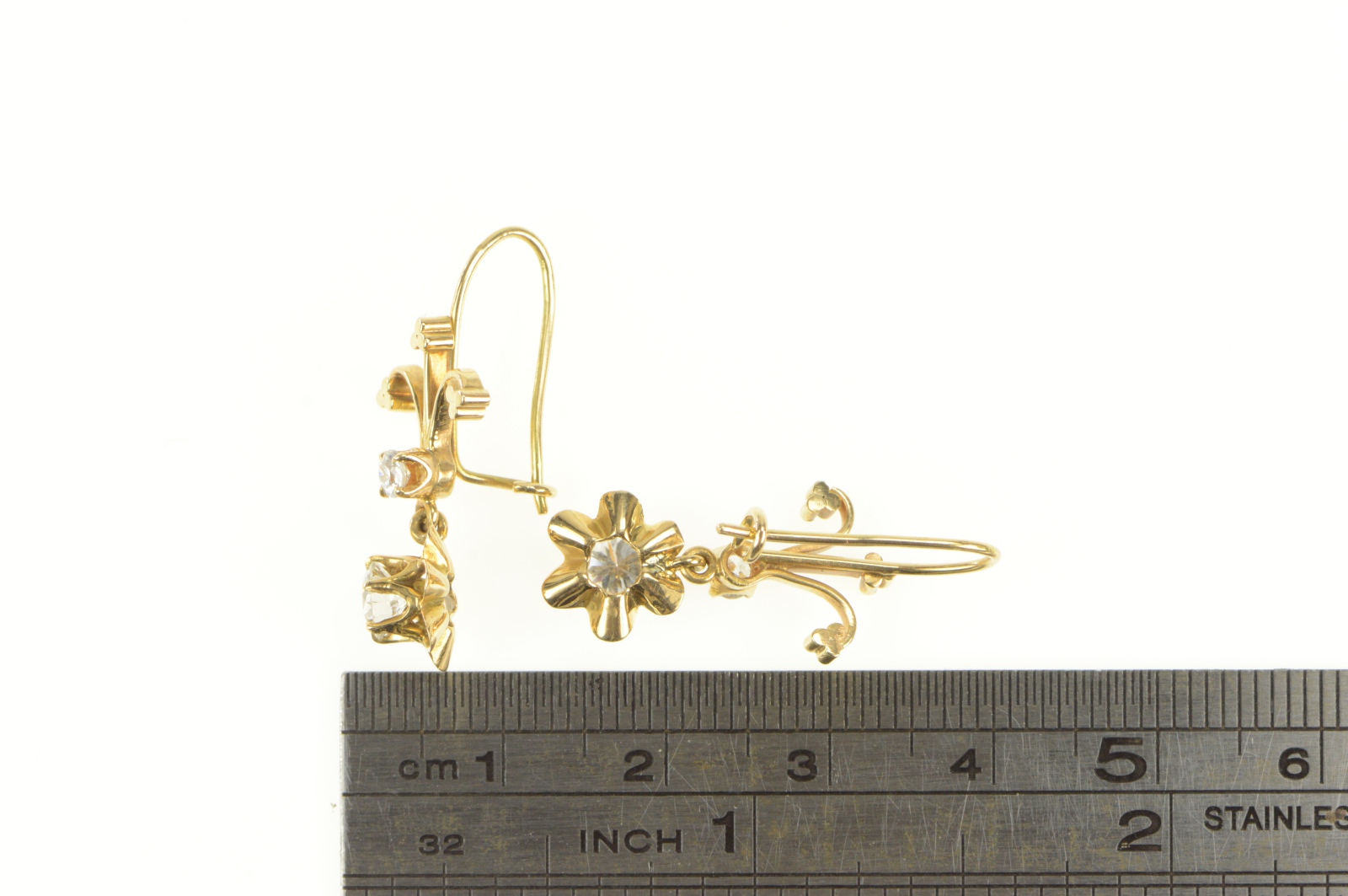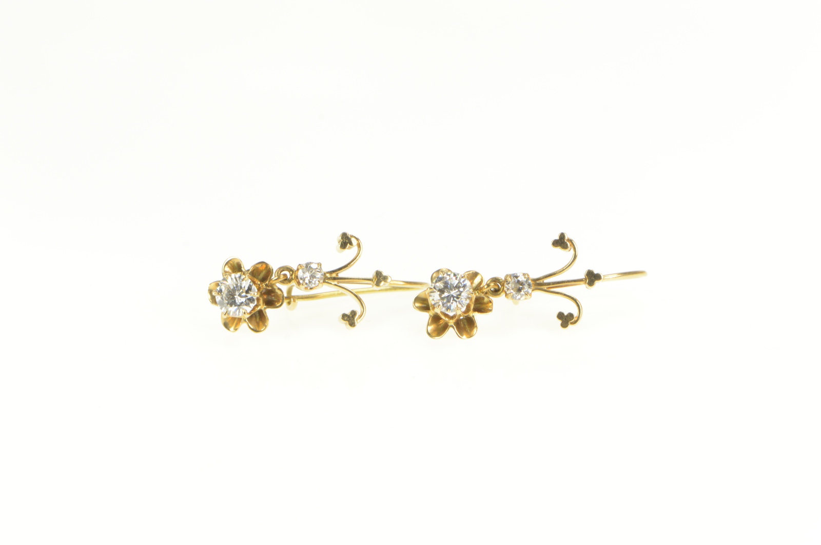 14K 1.10 Ctw 1950's Diamond Gypsy Dangle Yellow Gold Earrings