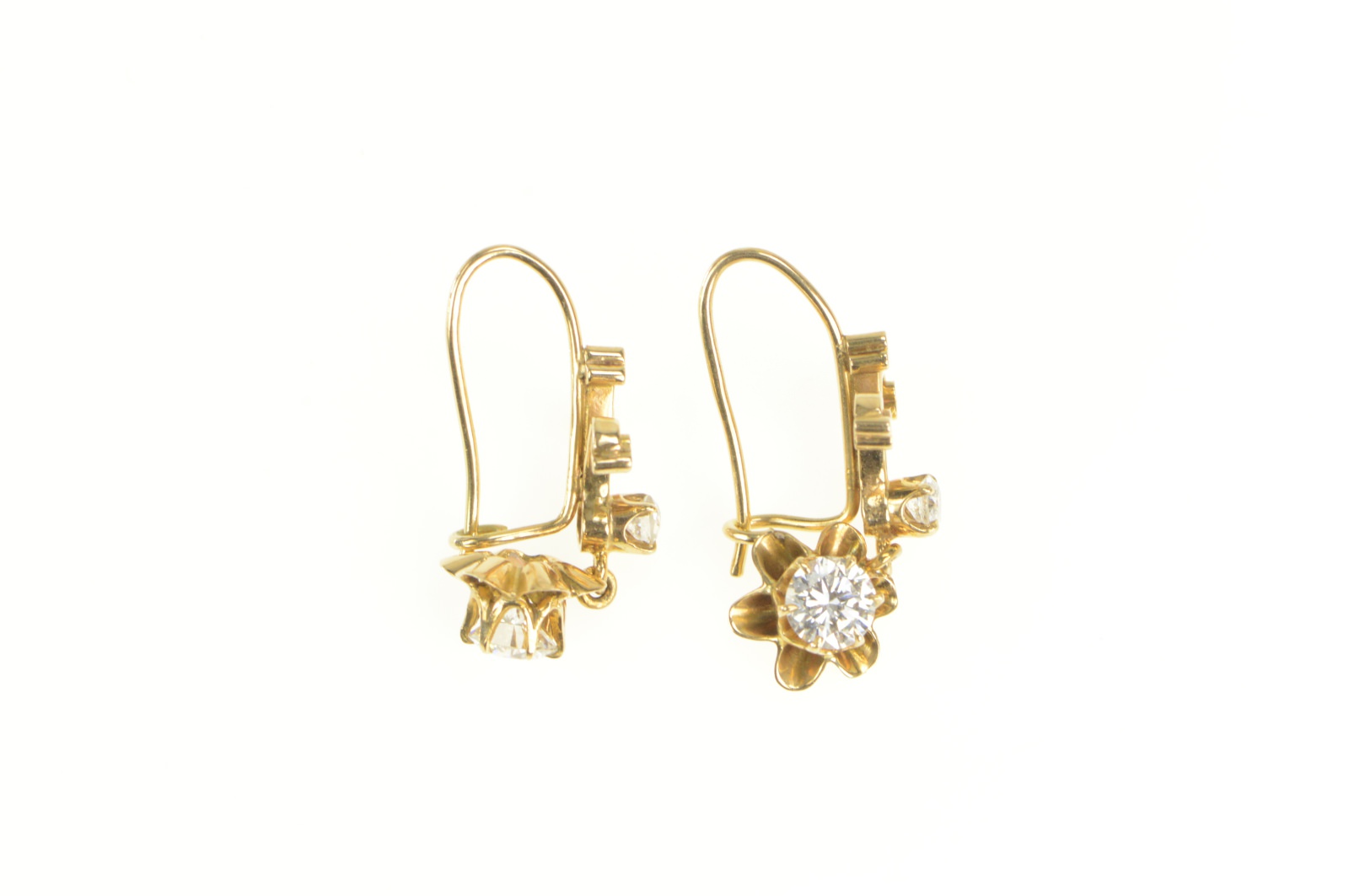 Item:  14K 1.10 Ctw 1950's Diamond Gypsy Dangle Yellow Gold Earrings