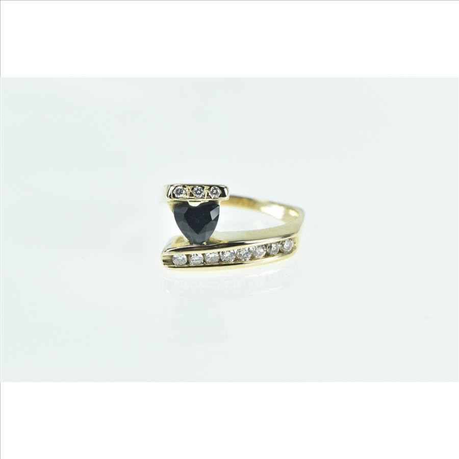 14K 1.18 Ctw Trillion Sapphire Diamond Bypass Yellow Gold Ring, Size 8.75