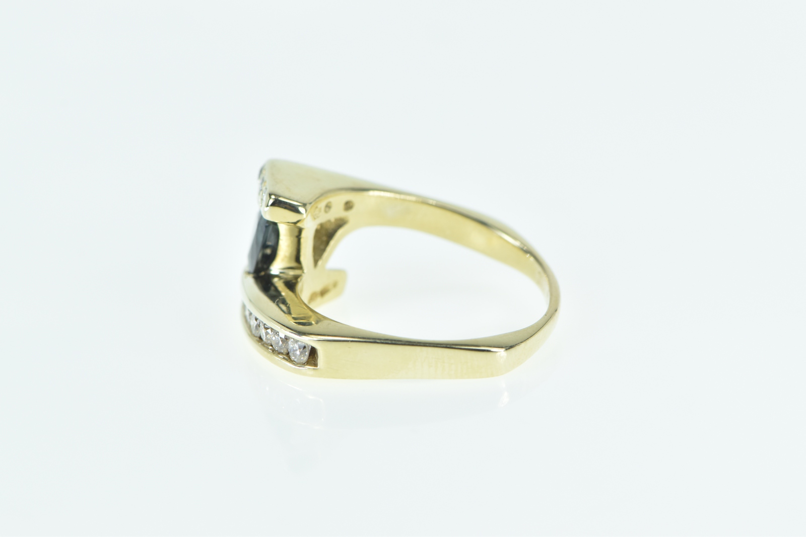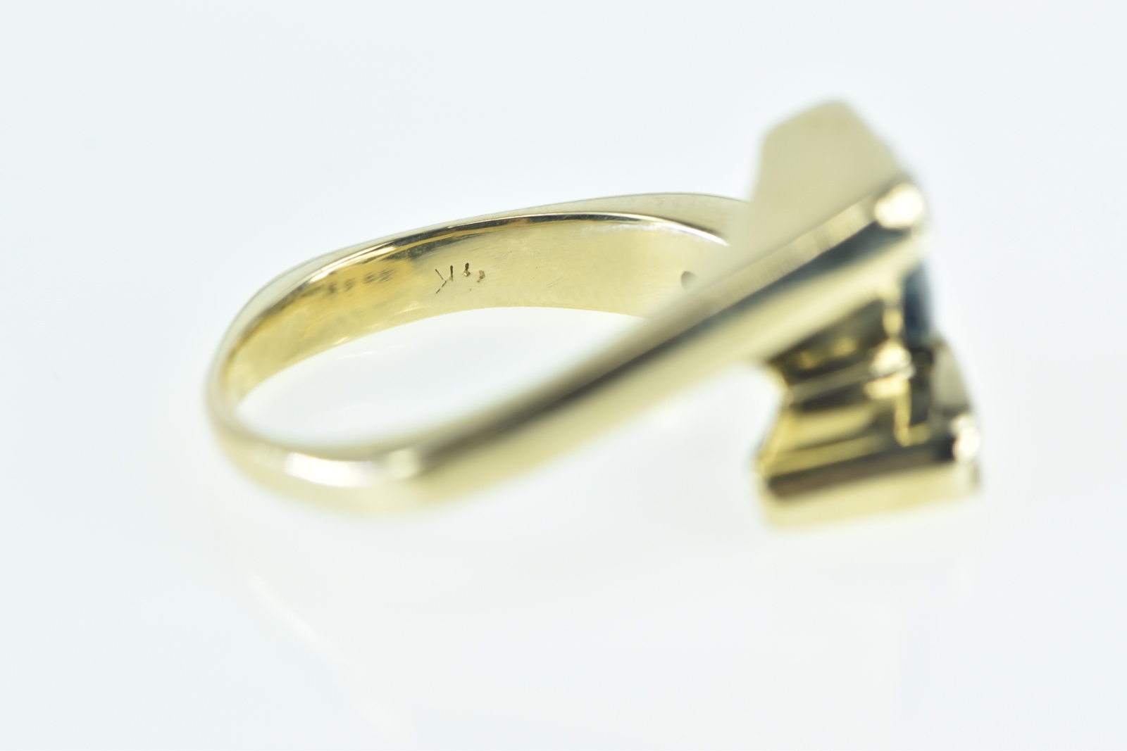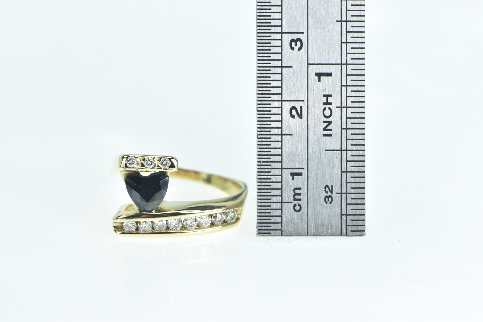 Item:  14K 1.18 Ctw Trillion Sapphire Diamond Bypass Yellow Gold Ring, Size 8.75