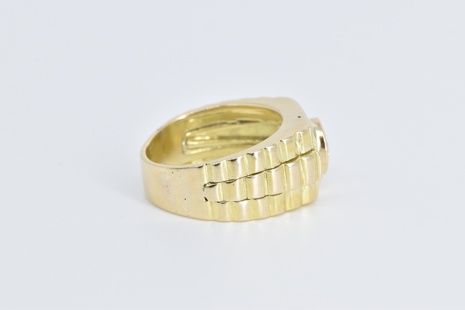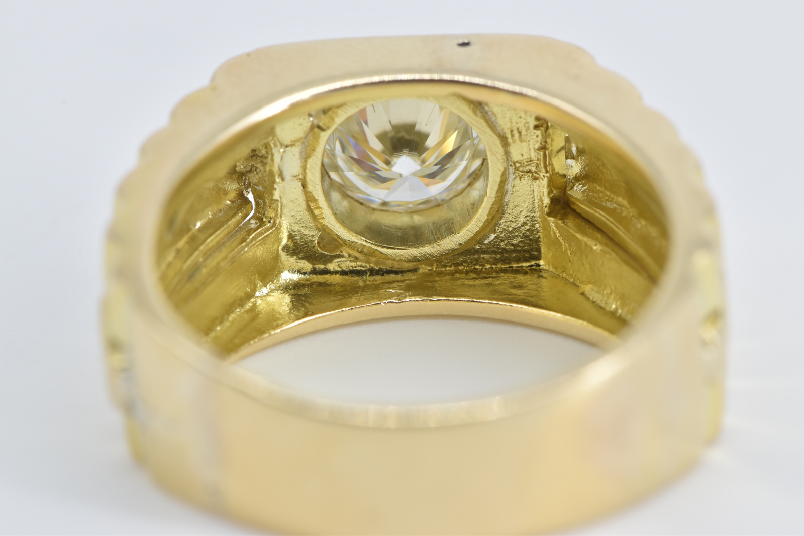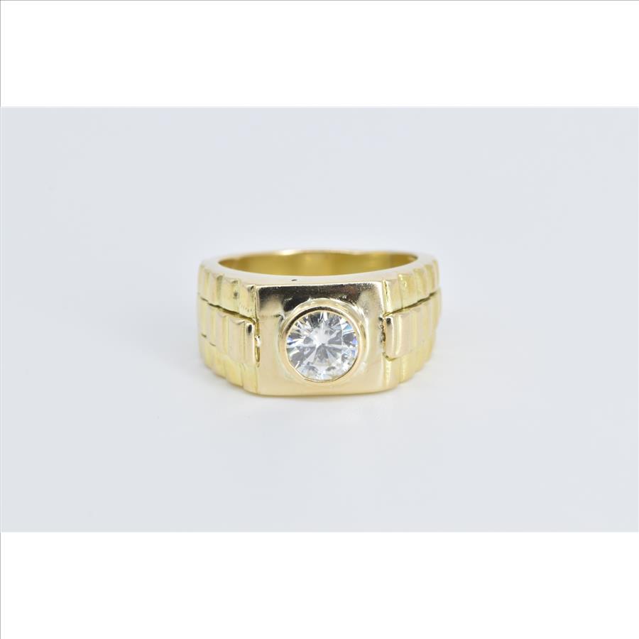 Item:  14K 1.50 Ct Moissanite Men's Ornate Watch Yellow Gold Ring, Size 9.25