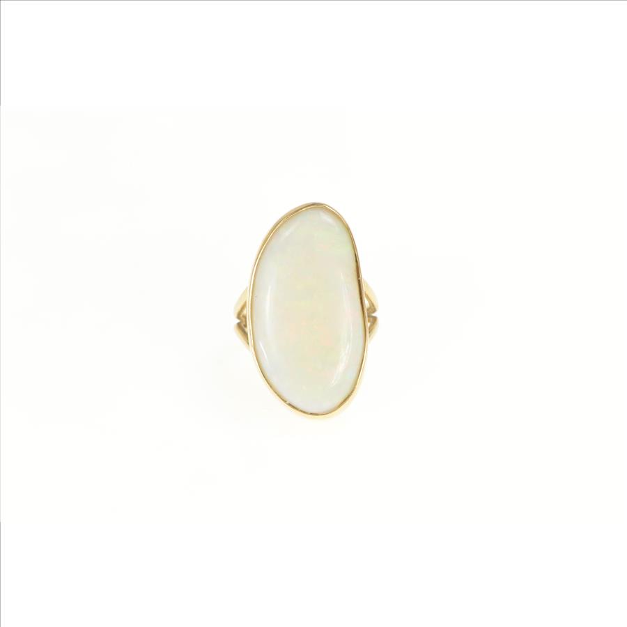 Item:  14K 16.00 Ct Natural Opal Bezel Statement Yellow Gold Ring, Size 7