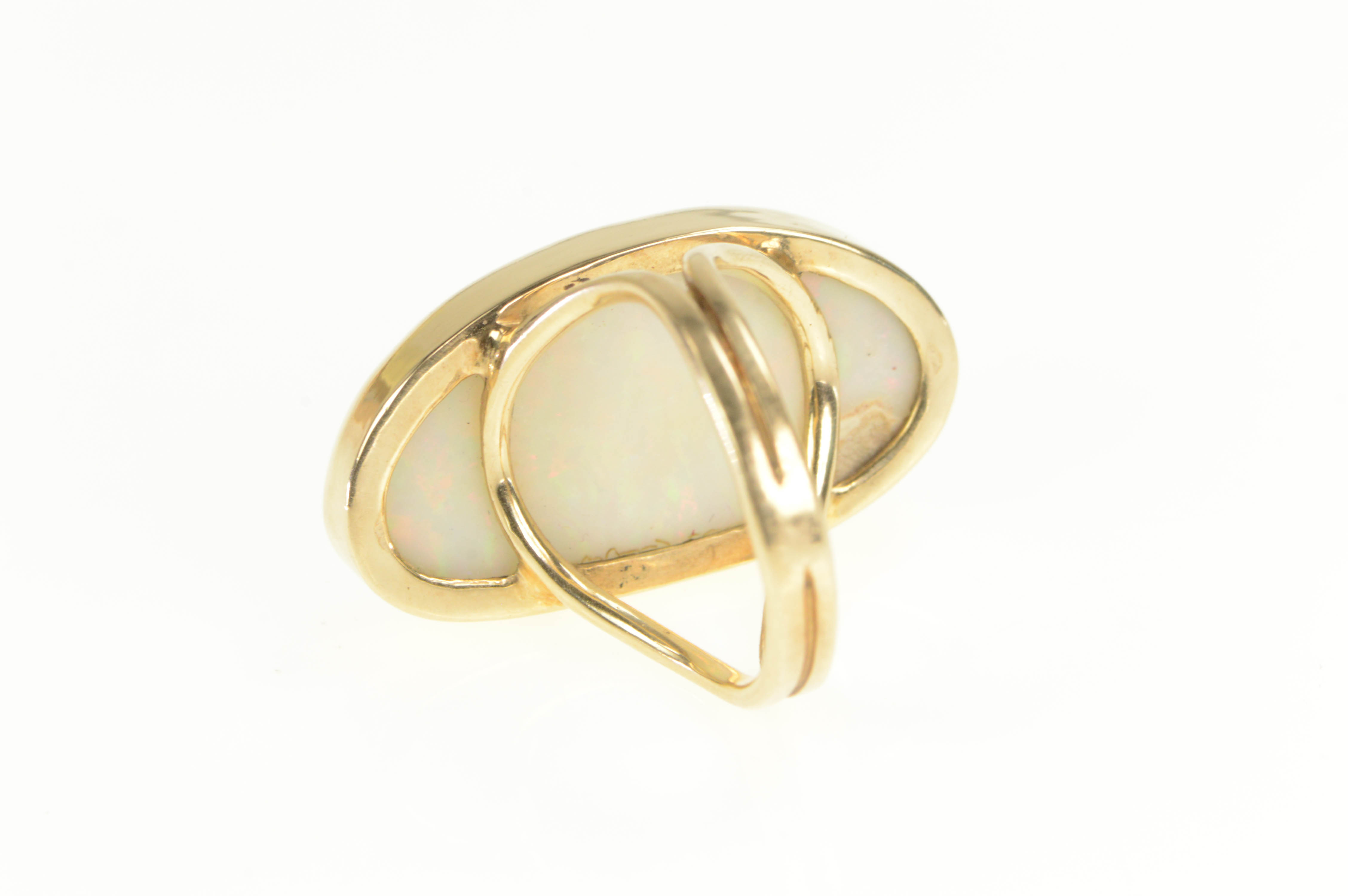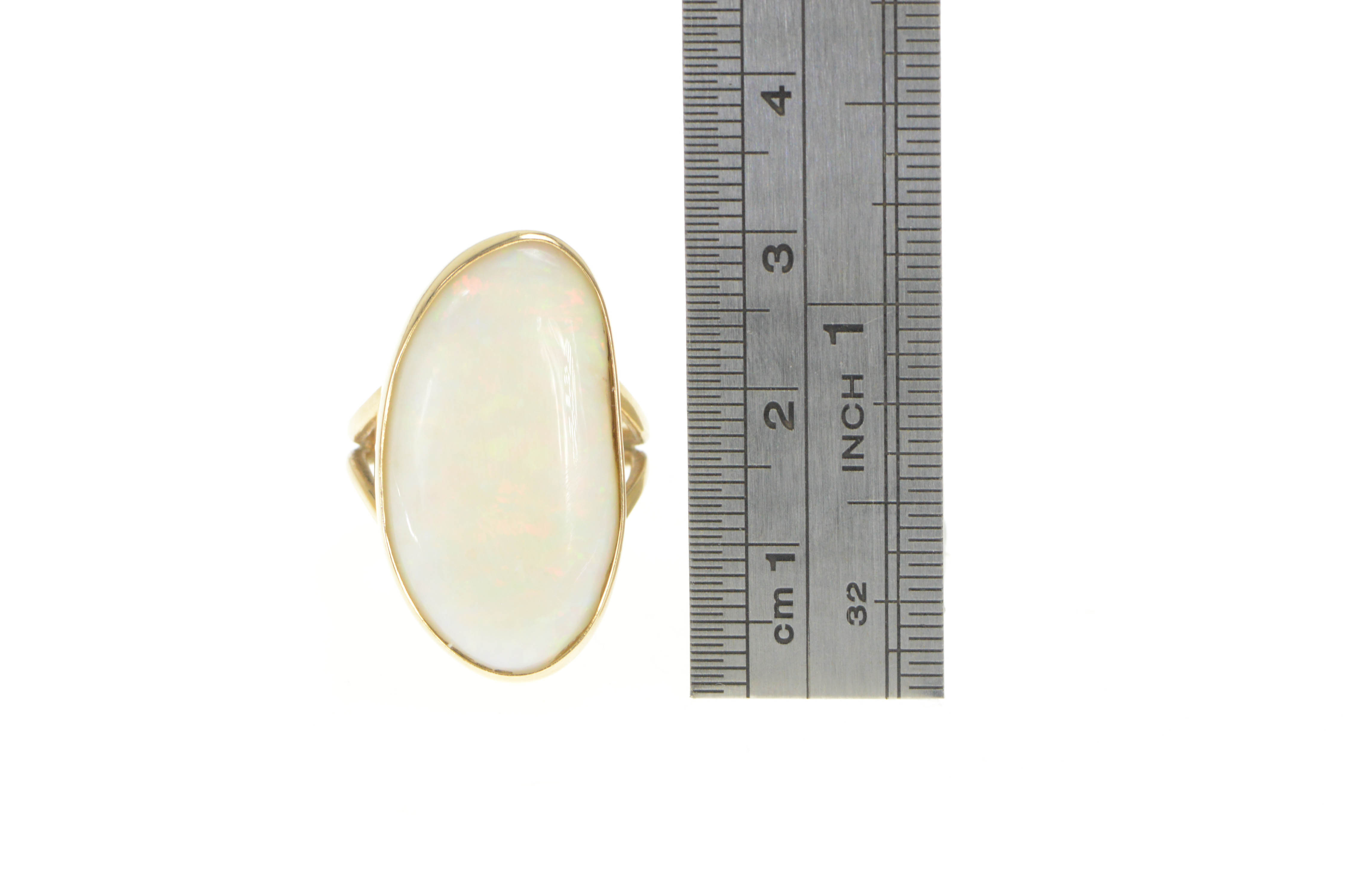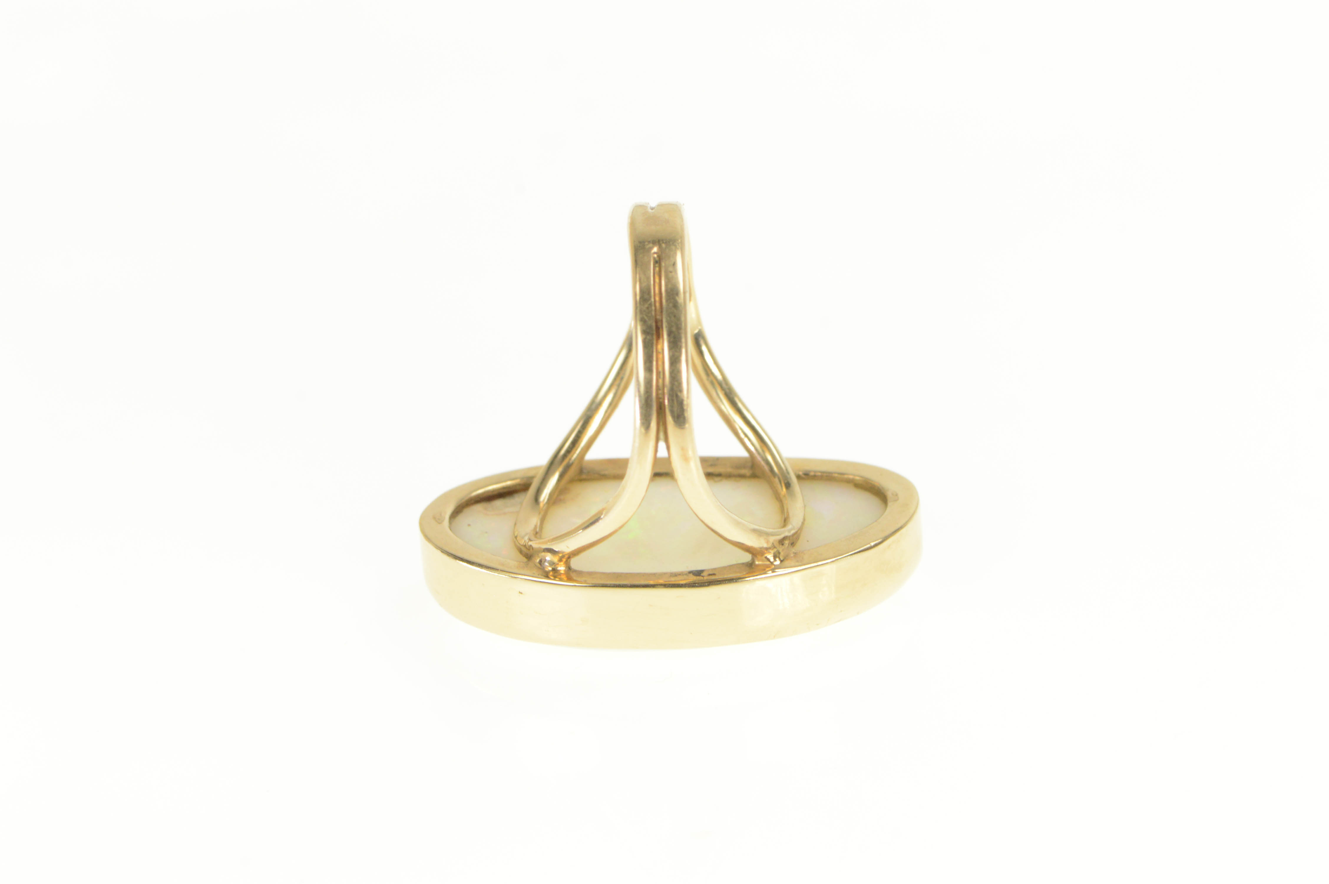 14K 16.00 Ct Natural Opal Bezel Statement Yellow Gold Ring, Size 7