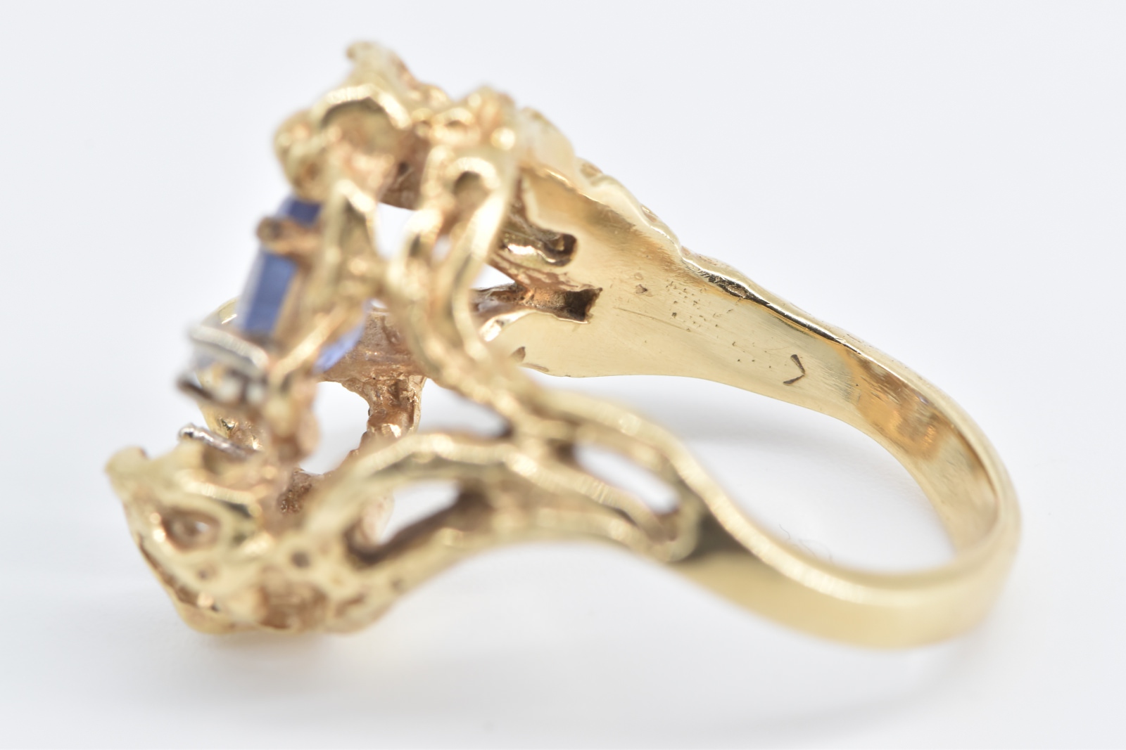 14K 1.65 Ctw Tanzanite Diamond Tree Freeform Yellow Gold Ring, Size 8.25