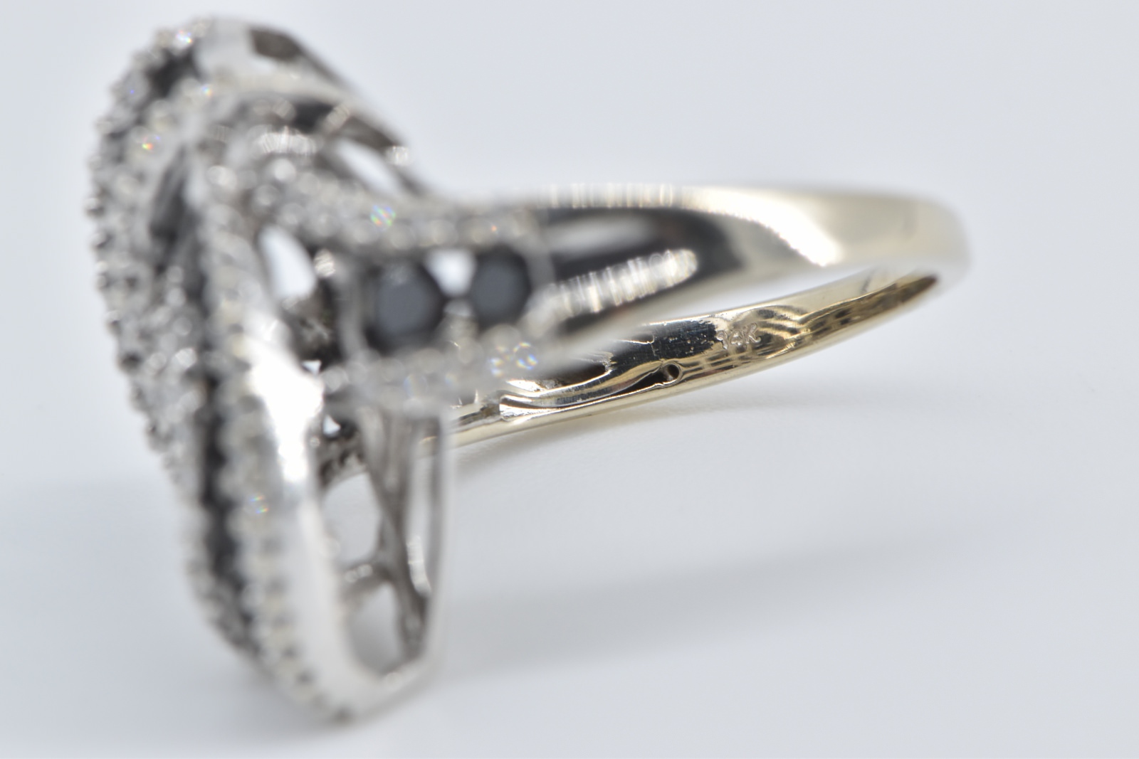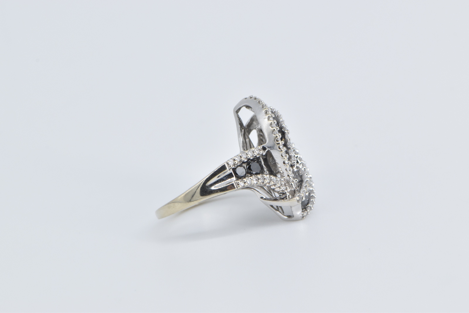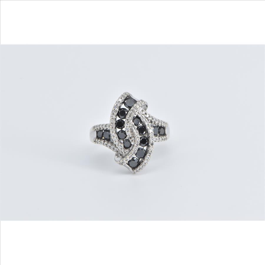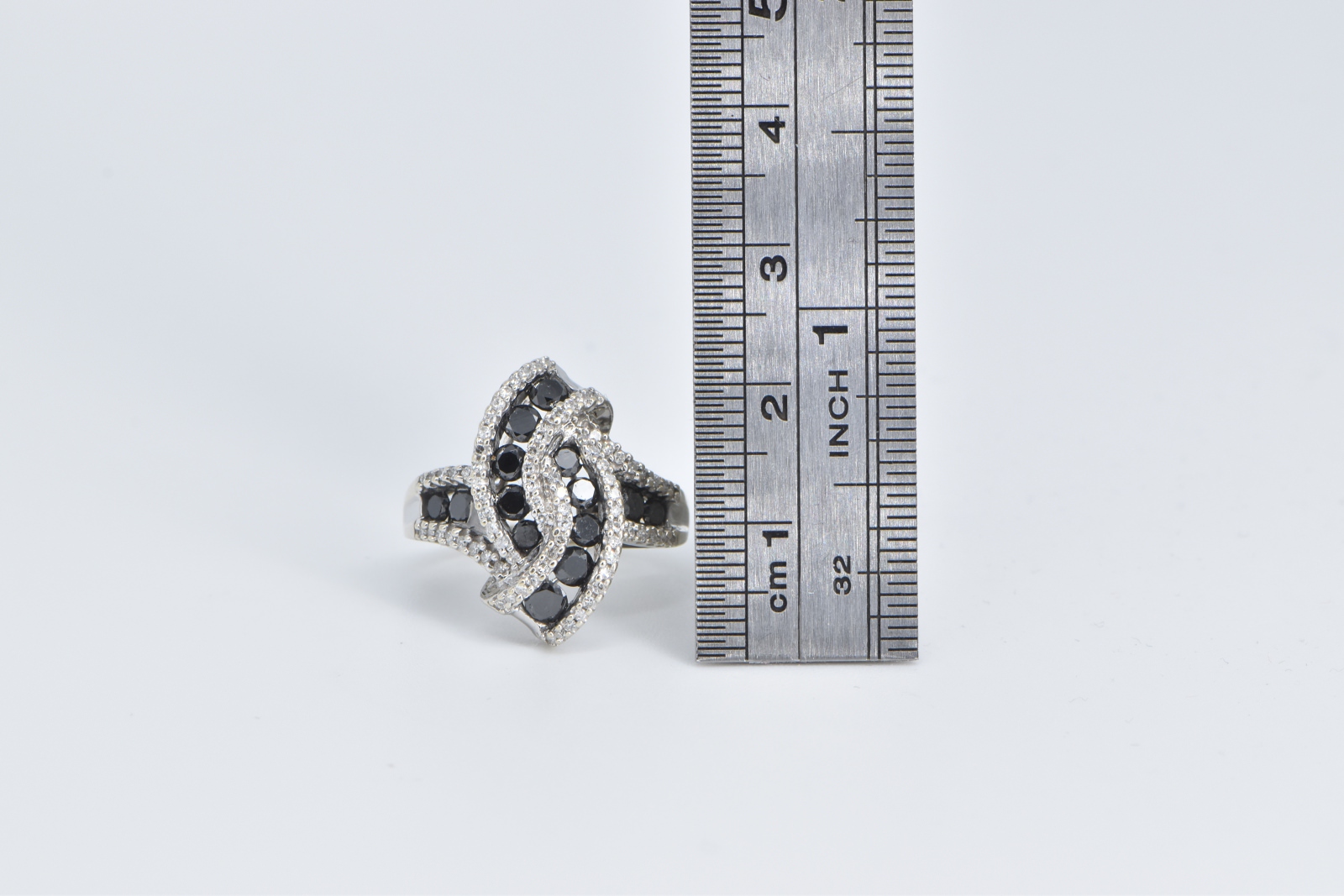 Item:  14K 1.67 Ctw Black & White Diamond Twist Cluster White Gold Ring, Size 6.5