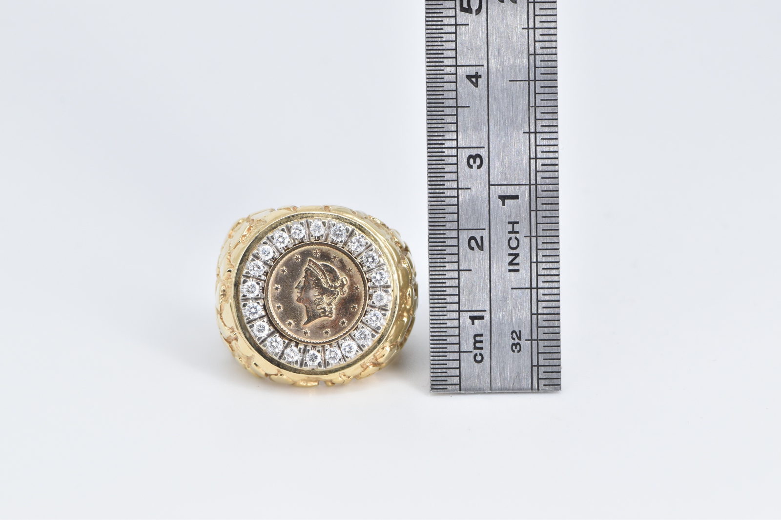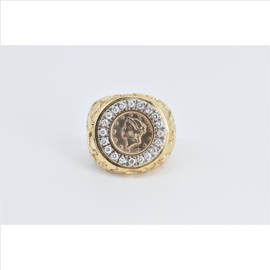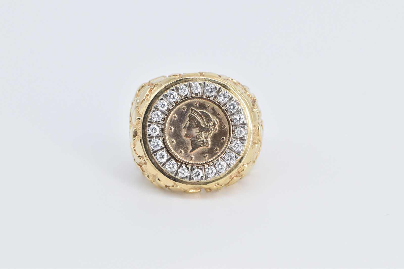 Item:  14K 1849-O Gold $1 Coin Natural Diamond Nugget Yellow Gold Ring, Size 8.25
