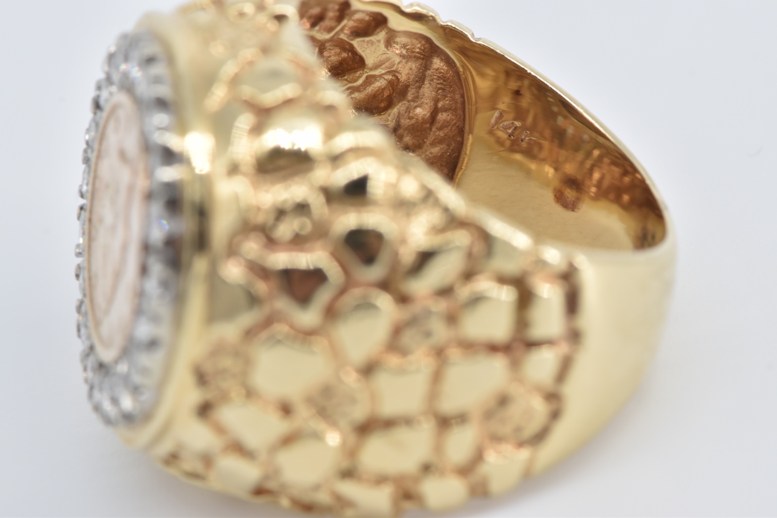 14K 1849-O Gold $1 Coin Natural Diamond Nugget Yellow Gold Ring, Size 8.25