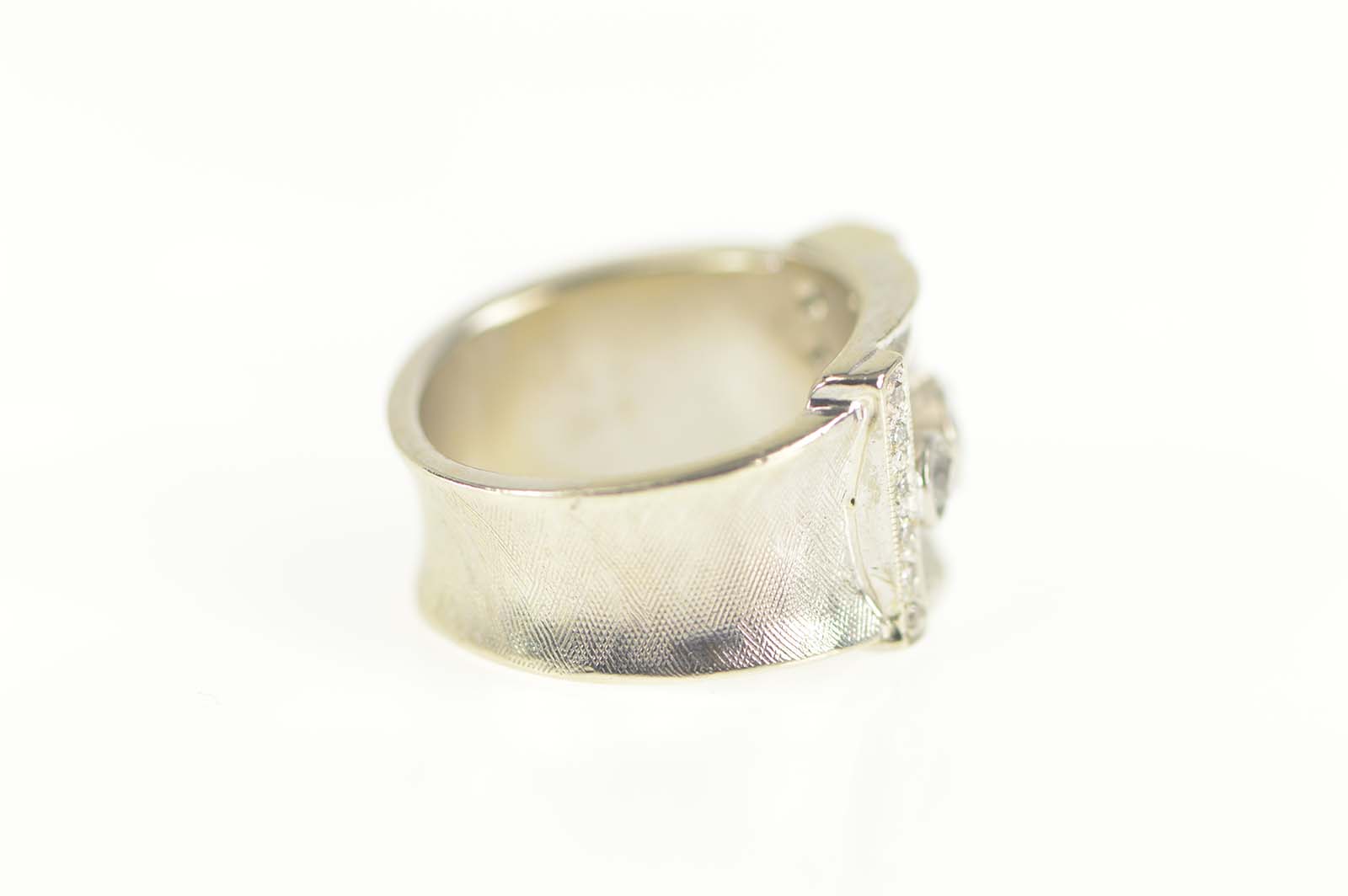 14K 1930's 0.61 Ctw Old European Diamond Buckle White Gold Ring, Size 5