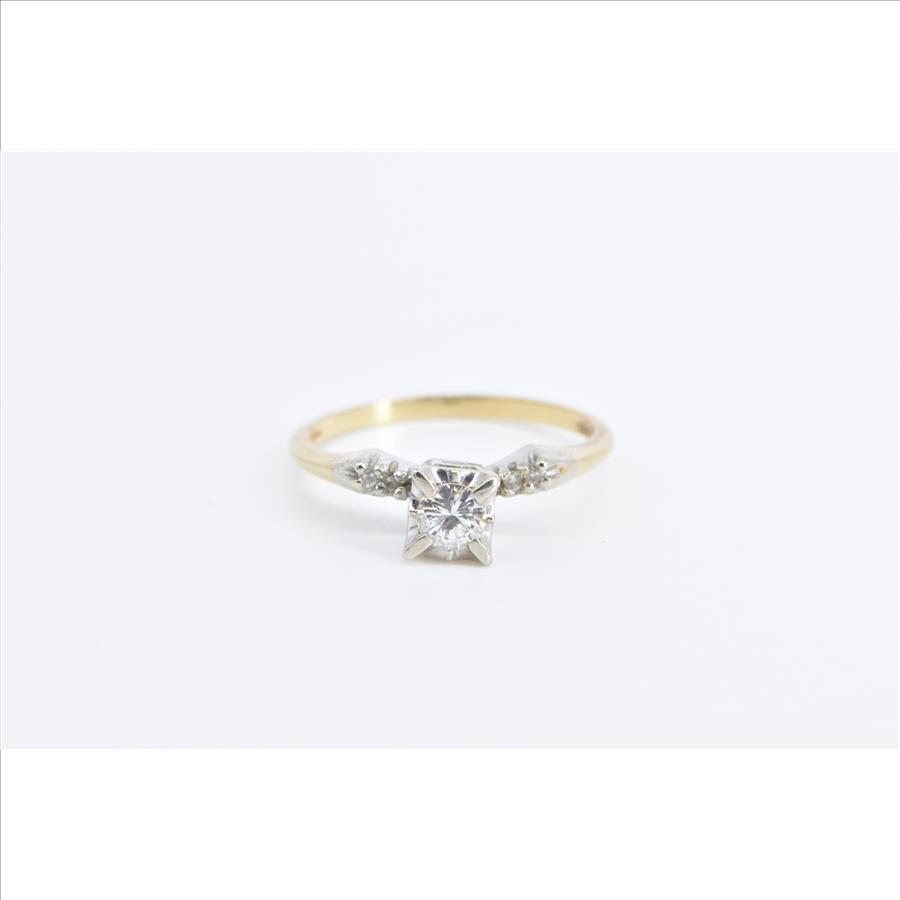 Item:  14K 1940's 0.23 Ctw Diamond Promise Engagement Yellow Gold Ring, Size 6.5