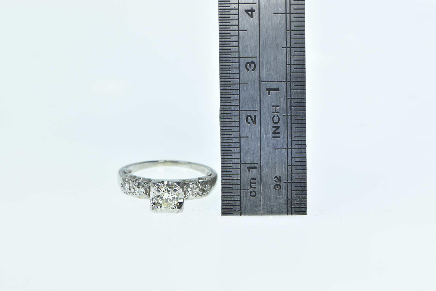 14K 1940's 0.41 Ctw Diamond Classic Engagement White Gold Ring, Size 5.25