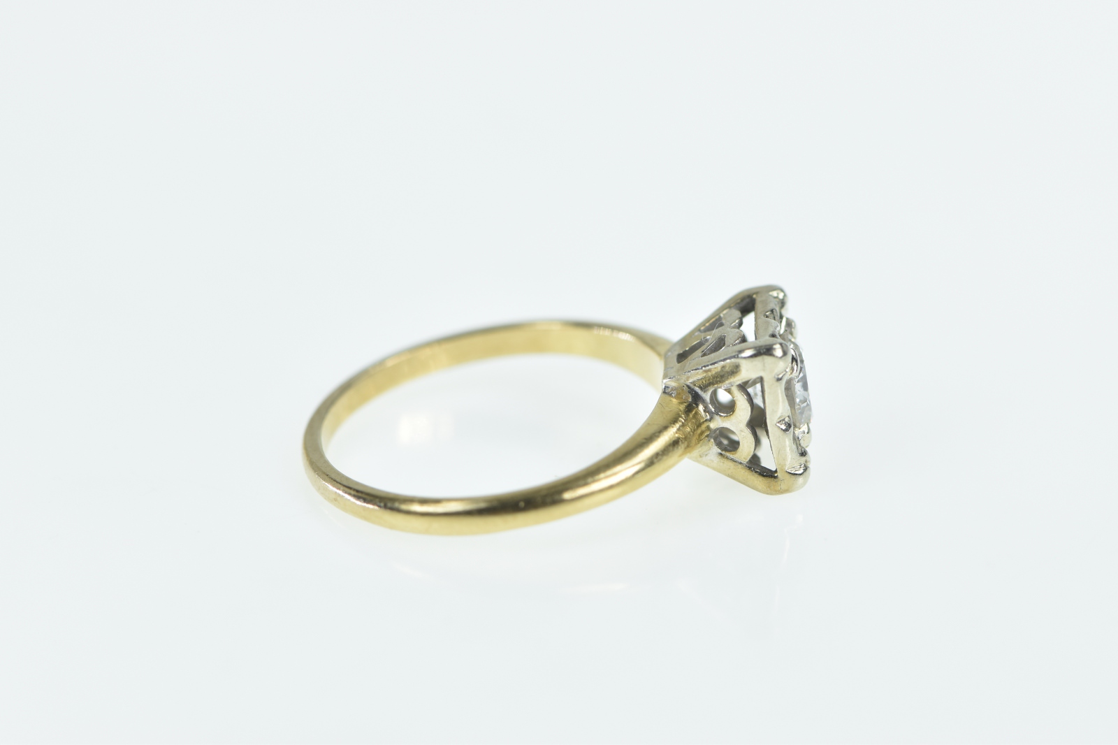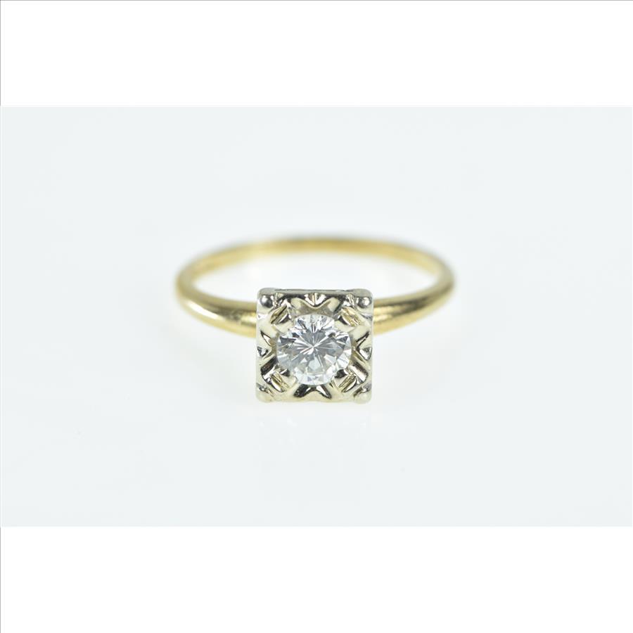 Item:  14K 1940's 0.47 Ct Diamond Engagement Yellow Gold Ring, Size 6.75