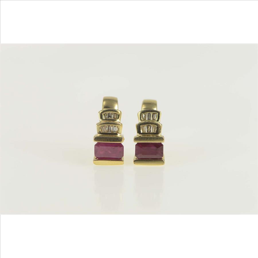 Item:  14K 2.00 Ctw Emerald Cut Ruby Diamond Stud Yellow Gold Earrings