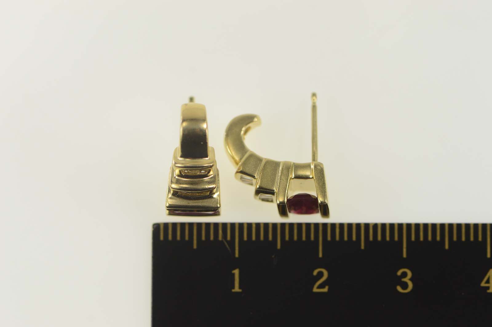 14K 2.00 Ctw Emerald Cut Ruby Diamond Stud Yellow Gold Earrings