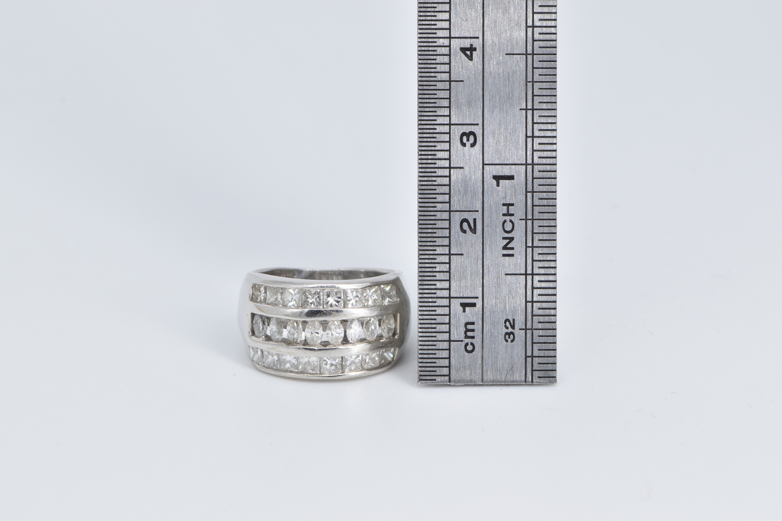 Item:  14K 2.00 Ctw Marquise Princess Diamond Band White Gold Ring, Size 5.75