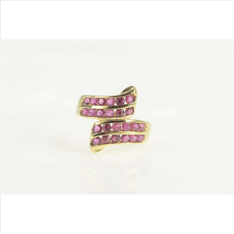 Item:  14K 2.00 Ctw Natural Ruby Tiered Channel Bypass Yellow Gold Ring, Size 7.25