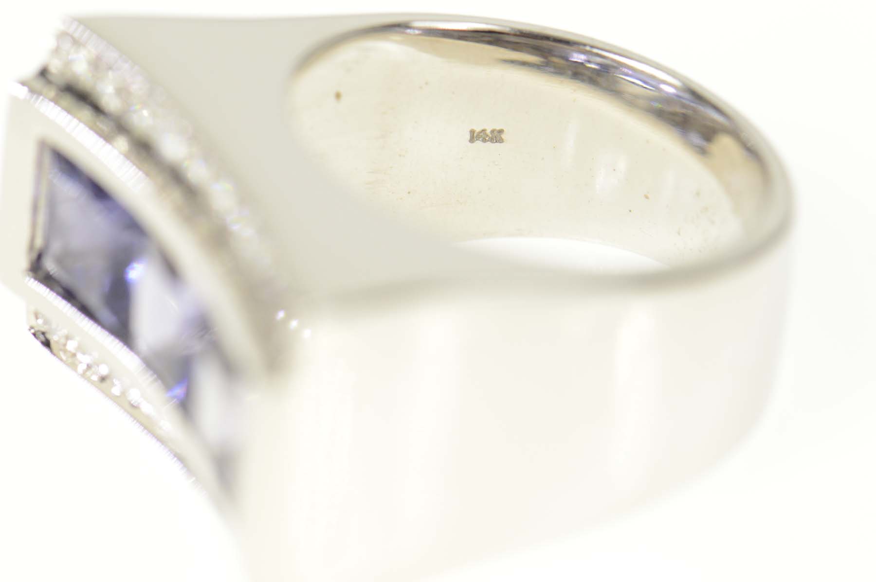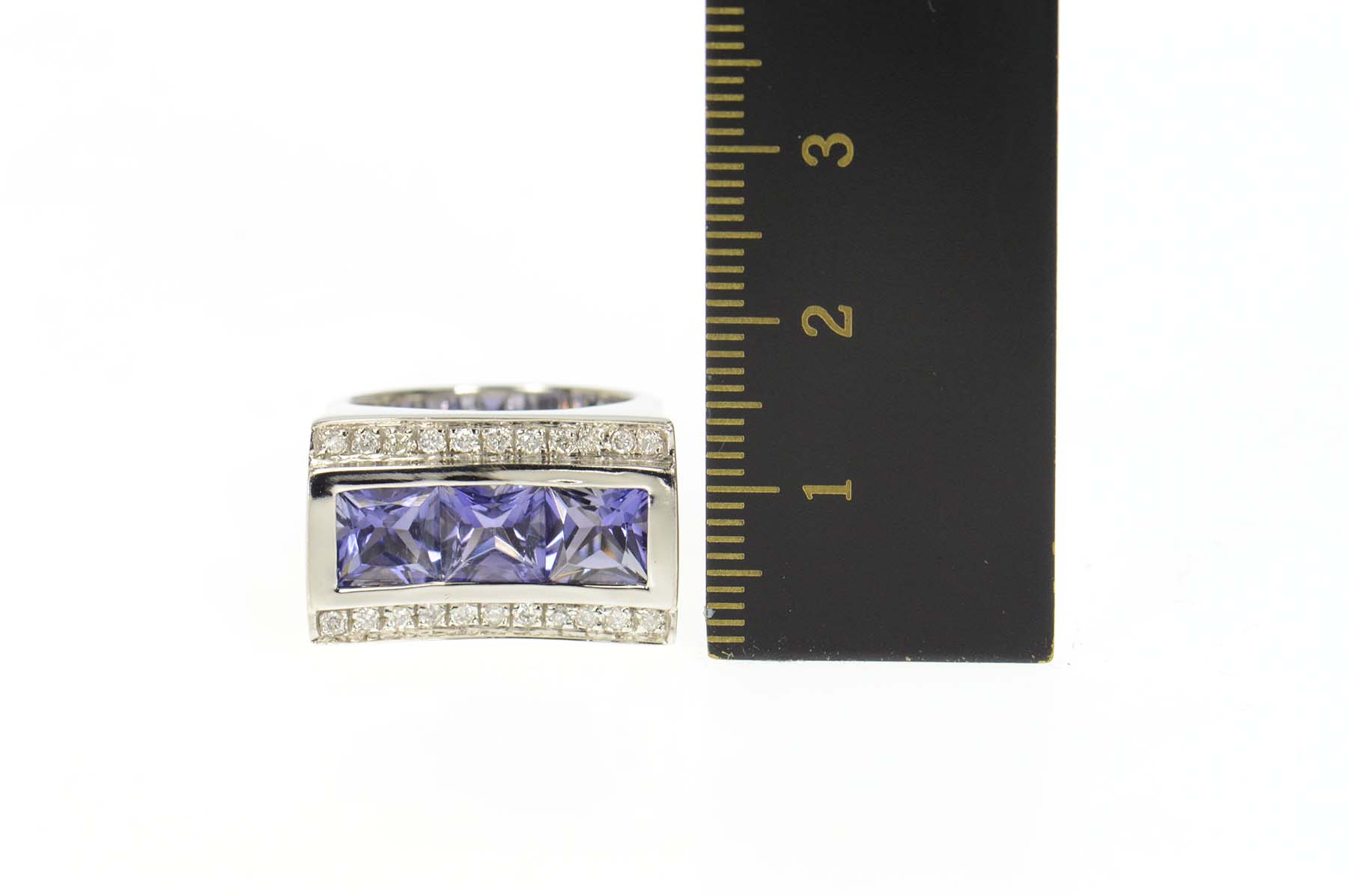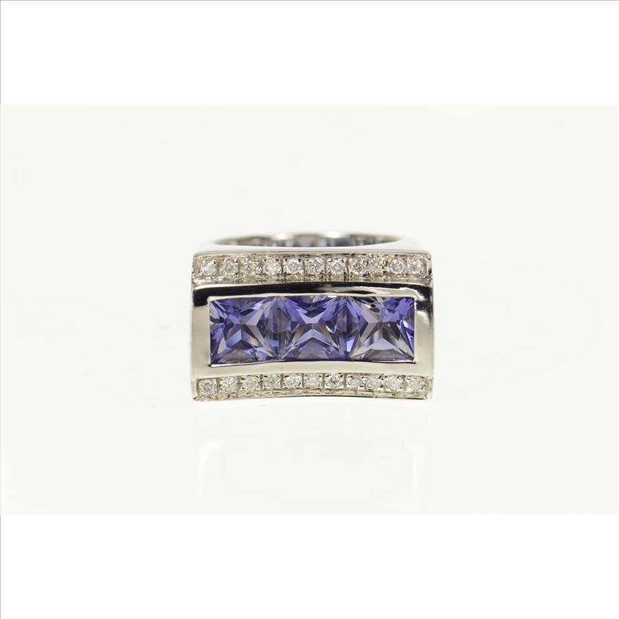 Item:  14K 3.16 Ctw Iolite Diamond Squared Curved White Gold Ring, Size 5.75