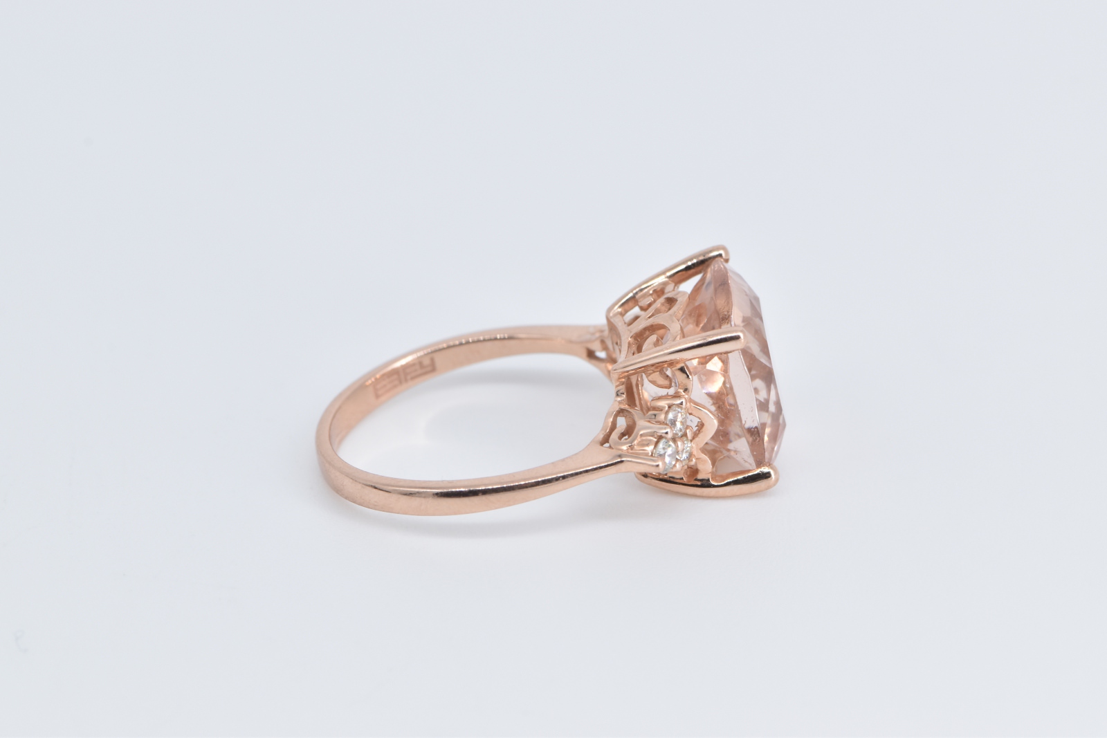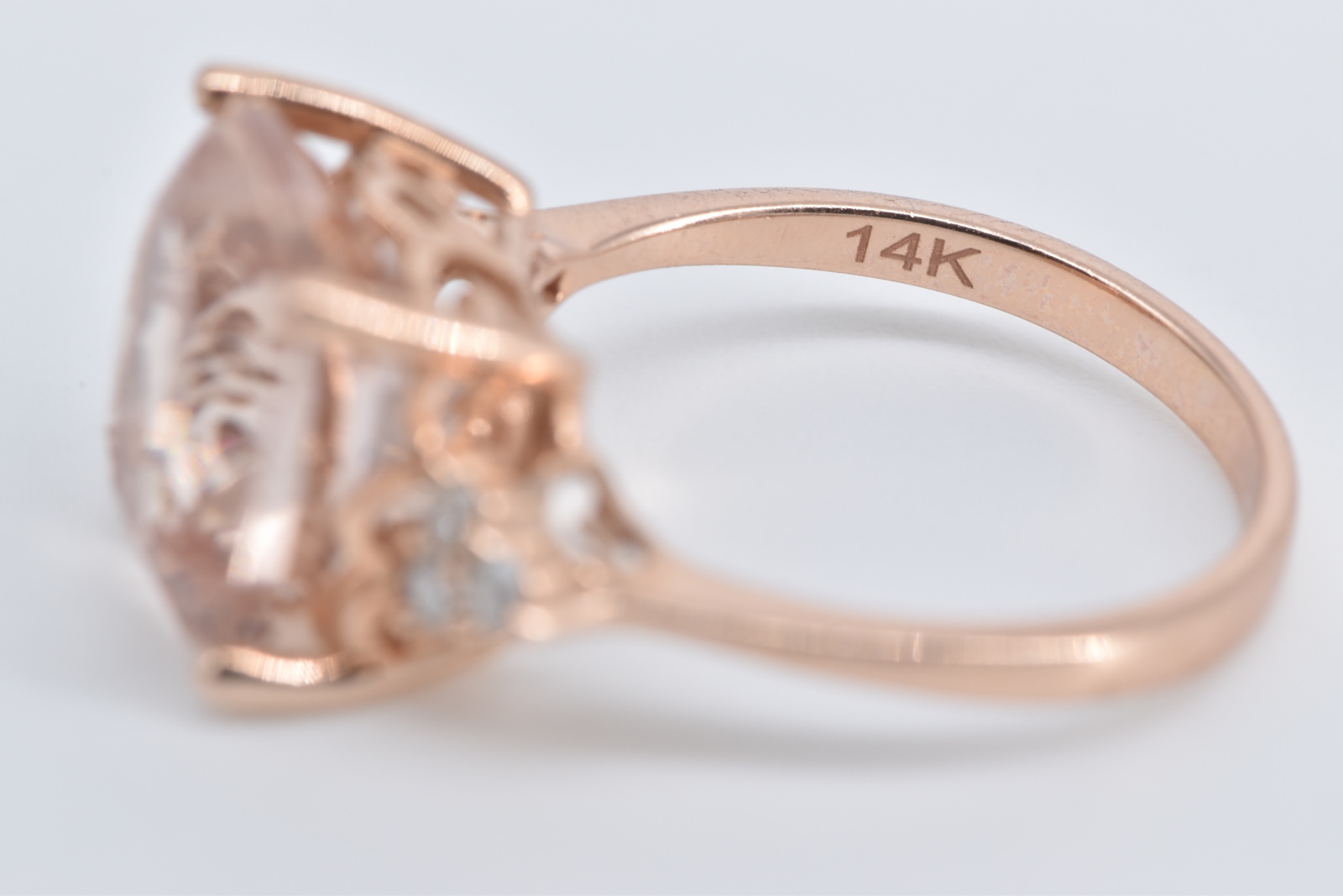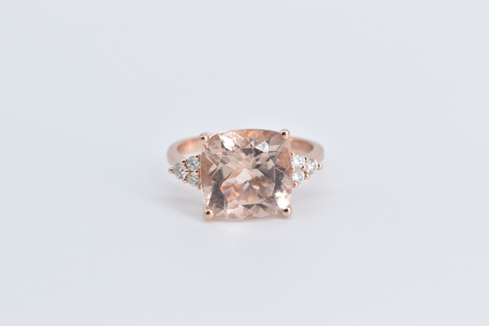 Item:  14K 3.50Ct Cushion Morganite Diamond Cluster Rose Gold Ring, Size 6.75