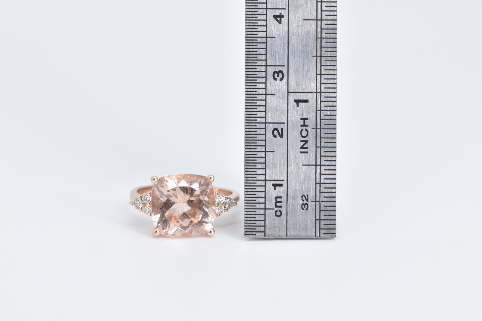 14K 3.50Ct Cushion Morganite Diamond Cluster Rose Gold Ring, Size 6.75