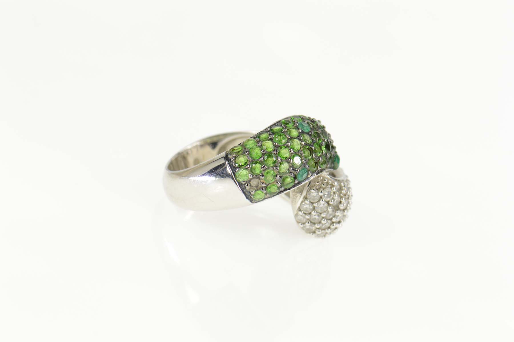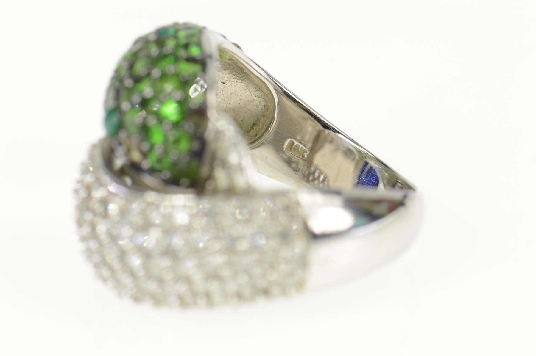 Item:  14K 3.92 Ctw Pave Tsavorite & Diamond Knot White Gold Ring, Size 7.75