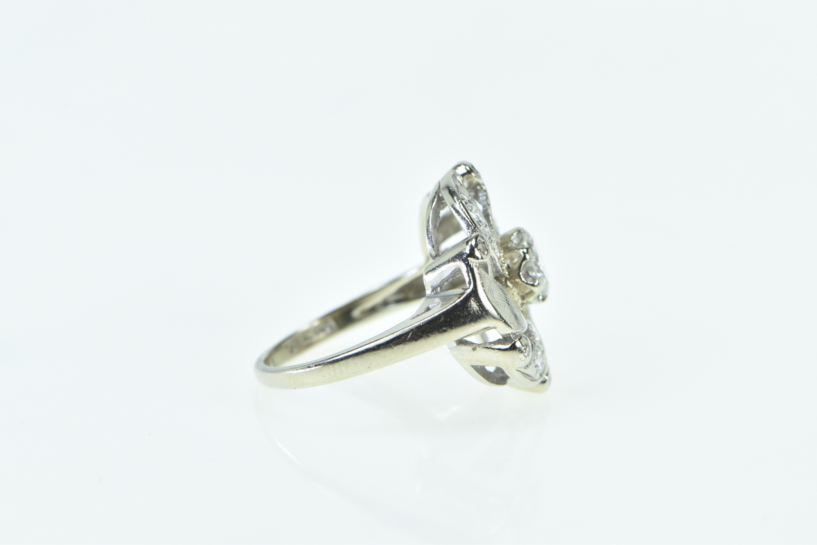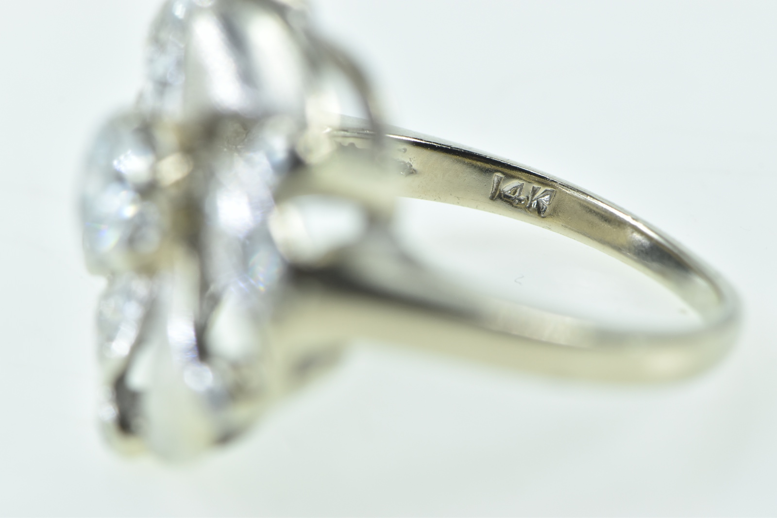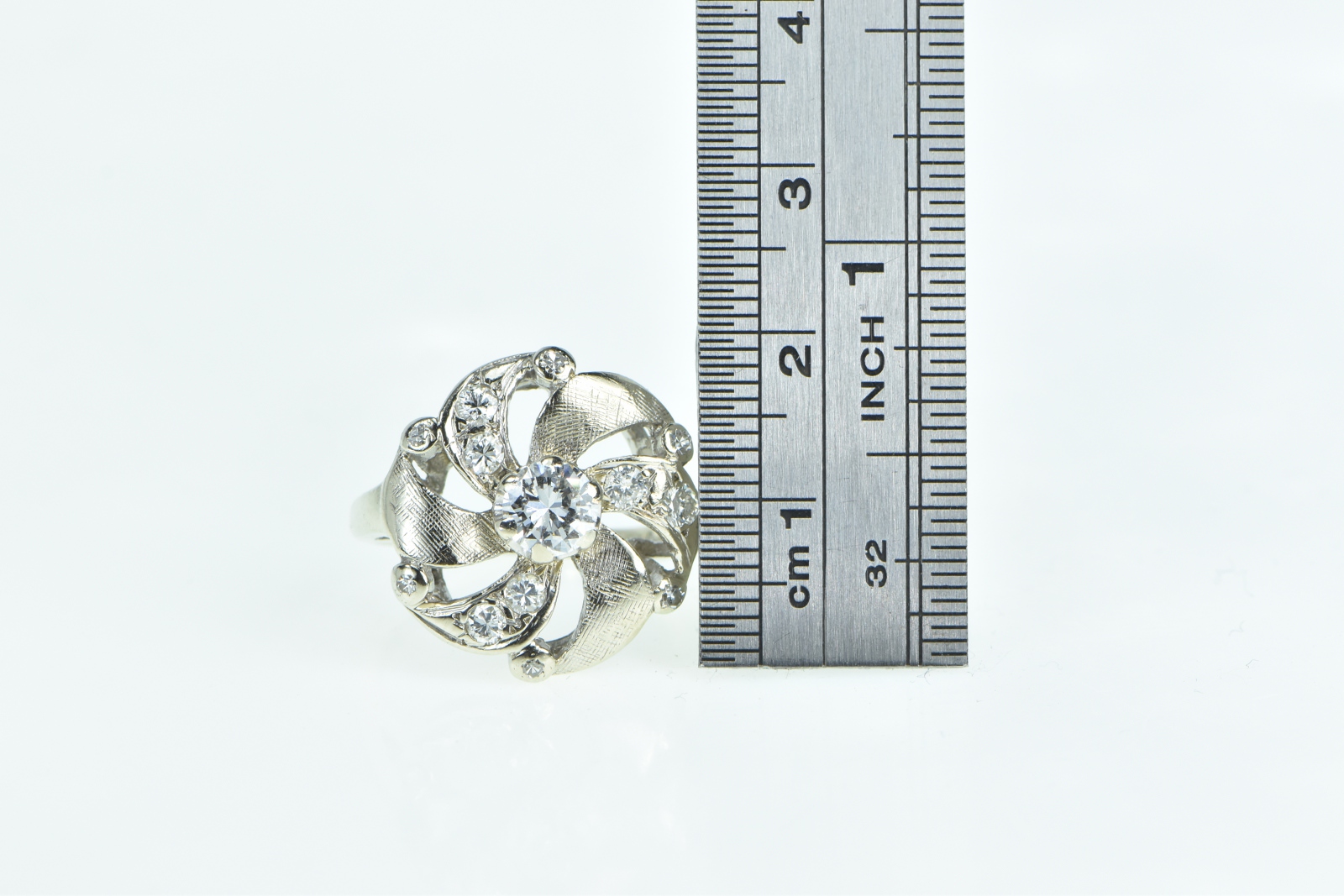 14K 50's 1.05 Ctw Diamond Swirl Statement Cocktail White Gold Ring, Size 7