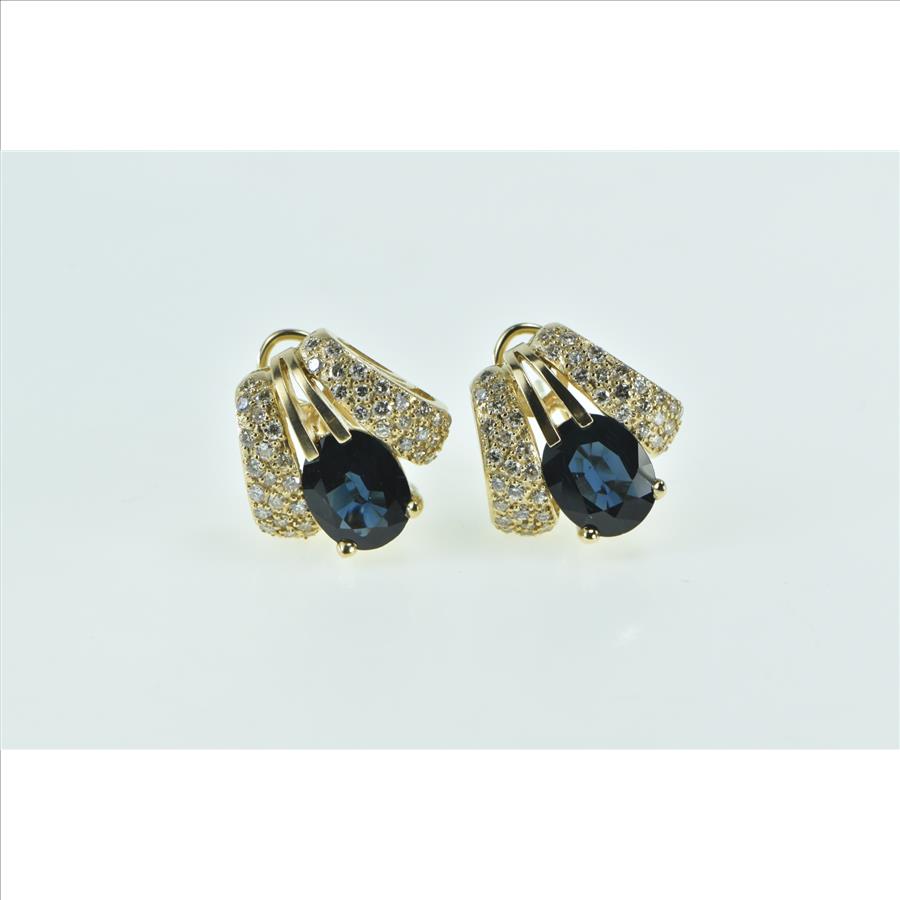 14K 7.75 Ctw Sapphire Pave Diamond French Clip Yellow Gold Earrings